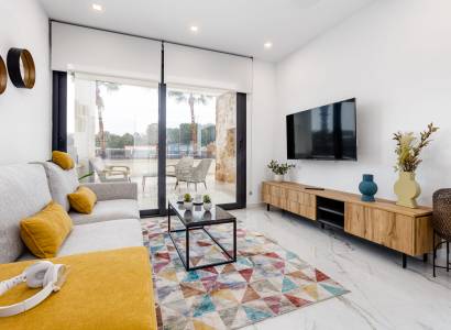 The homes are equipped with modern features that ensure comfort and functionality. All properties come furnished, making moving in easy and allowing you to enjoy your home from day one. The porcelain stoneware flooring adds a touch of elegance and is easy to maintain. Electric blinds and air conditioning ensure a pleasant environment all year round. The kitchen is equipped with high-quality appliances, and the built-in wardrobes in the bedrooms offer ample storage space. With two bedrooms and two bathrooms, these homes are designed to offer comfort and privacy to their residents.