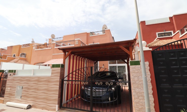 Esta orientada al este, tres dormitorios, Chalet adosado en Benimar está situado en un tranquilo y calmado, urbanización residencial, cerca de Benijofar y Rojales, a menos de media hora del aeropuerto de Alicante. Situado a poca distancia a pie de todas las comodidades que esta urbanización tiene para ofrecer, así como a bares, restaurantes, tiendas, supermercados, bancos y mucho más. Con las hermosas playas con bandera azul de Guardamar del Segura a sólo 10 minutos en coche del hotel. Este modelo "Maite" propiedad consta en la planta baja de un plan abierto cocina completamente equipada; una familia ducha y amplio salón/comedor con puertas de vidrio doble en la parte delantera, la mitad terraza cubierta, ideal para tomar el desayuno, la mañana y primeras horas de la tarde sol; las escaleras llevan a dos dormitorios dobles, un dormitorio individual, un 2o familia cuarto de ducha y una habitación inmovilizadase que también se puede acceder desde el exterior de la puerta. Afuera hay un ordenado, mitad con azulejos, mitad jardín de gravilla con diversas plantas y árboles, más las escaleras externas que conducen a la terraza privada en la azotea, ideal para tomar el sol y con unas vistas geniales del área y de las montañas en la distancia. Esta propiedad también tiene acceso a una fantástica piscina comunitaria...