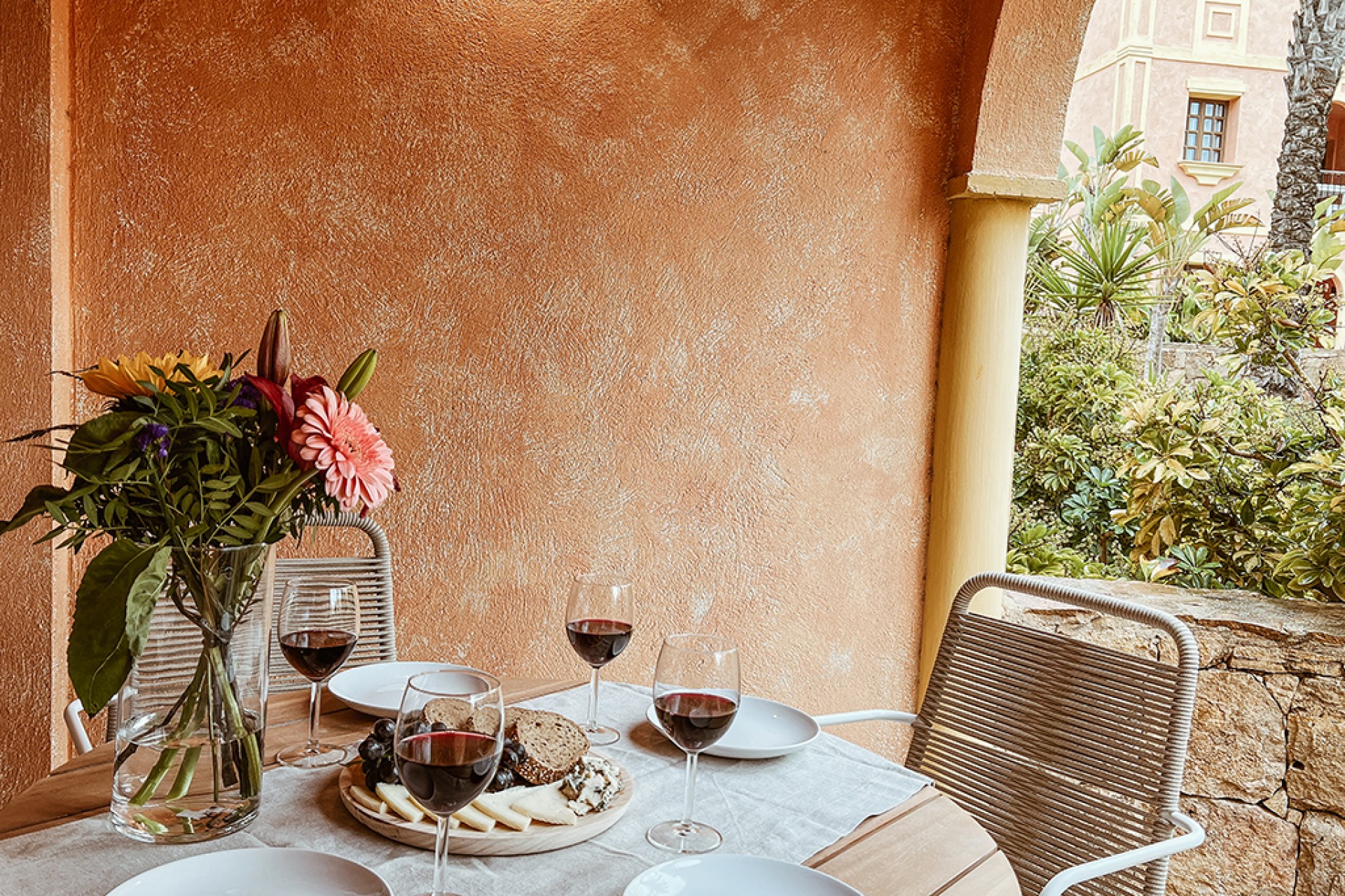 Los exteriores de este residencial están pensados para disfrutar al máximo del entorno. Cada apartamento cuenta con una terraza privada, perfecta para relajarse al aire libre y disfrutar del clima mediterráneo. Además, algunos apartamentos ofrecen un solárium, proporcionando un espacio adicional para el ocio y el descanso. Las zonas comunes incluyen jardines bien cuidados, ideales para paseos tranquilos o para que los niños jueguen con seguridad.