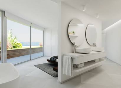 Los exteriores de estas propiedades en Pueblo Mascarat están diseñados para ofrecer el máximo disfrute del entorno natural y las vistas al mar. Cada propiedad cuenta con una terraza privada, ideal para relajarse y disfrutar del paisaje. Además, algunas propiedades incluyen un jardín privado, perfecto para quienes buscan un espacio verde personal. La presencia de una piscina privada en ciertas tipologías permite disfrutar de un refrescante baño en la privacidad de su hogar. Las pérgolas proporcionan sombra y estilo a las áreas exteriores, creando espacios acogedores para el descanso y el entretenimiento al aire libre. La cercanía al mar, a solo 400 metros, hace que el acceso a la playa sea cómodo y rápido, permitiendo disfrutar de la costa en cualquier momento.