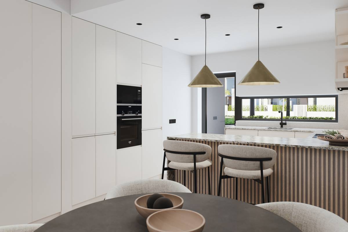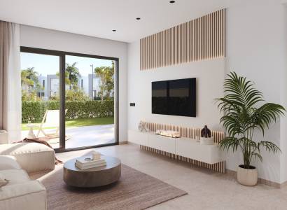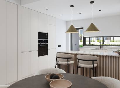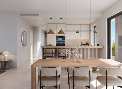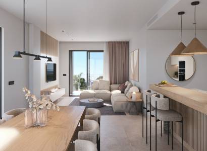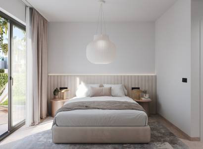 Las viviendas de este residencial están diseñadas con un enfoque en la comodidad y la modernidad. Los interiores cuentan con suelos de cerámica que aportan un toque elegante y son fáciles de mantener. La seguridad y la comodidad están garantizadas con un videoportero y persianas eléctricas en cada unidad. Las cocinas están completamente equipadas con electrodomésticos modernos, facilitando la vida diaria. Los armarios empotrados ofrecen un amplio espacio de almacenamiento, manteniendo los espacios ordenados y organizados. Las propiedades disponen de terrazas, perfectas para disfrutar del clima mediterráneo. Las opciones de distribución incluyen viviendas de 2 y 3 dormitorios, todas con 2 baños, adaptándose a diferentes necesidades familiares.
