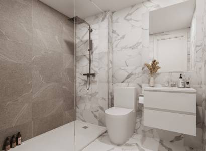 El interior de las viviendas está diseñado para ofrecer el máximo confort y funcionalidad. Los apartamentos y plantas bajas cuentan con suelos de gres porcelánico, que aportan un toque de elegancia y son fáciles de mantener. El sistema de videoportero proporciona seguridad y comodidad, mientras que las persianas eléctricas permiten un control eficiente de la luz y la privacidad. Los electrodomésticos de alta calidad están incluidos, facilitando la vida diaria de los residentes. El aire acondicionado asegura un ambiente fresco durante los meses más cálidos, y los armarios empotrados ofrecen un espacio de almacenamiento óptimo. La distribución de las viviendas, con opciones de dos o tres dormitorios y dos baños, está pensada para adaptarse a diferentes necesidades y estilos de vida, proporcionando un espacio acogedor y funcional para toda la familia.