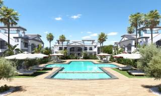 Los exteriores de estos bungalows están diseñados para maximizar el disfrute del clima mediterráneo. Cada propiedad cuenta con un jardín privado, perfecto para relajarse o disfrutar de actividades al aire libre. Las terrazas ofrecen un espacio adicional para el entretenimiento o simplemente para disfrutar de las vistas. Además, la presencia de un solárium proporciona un lugar ideal para tomar el sol en total privacidad. La inclusión de una pérgola añade un toque de elegancia y funcionalidad, permitiendo disfrutar del espacio exterior en cualquier momento del día.