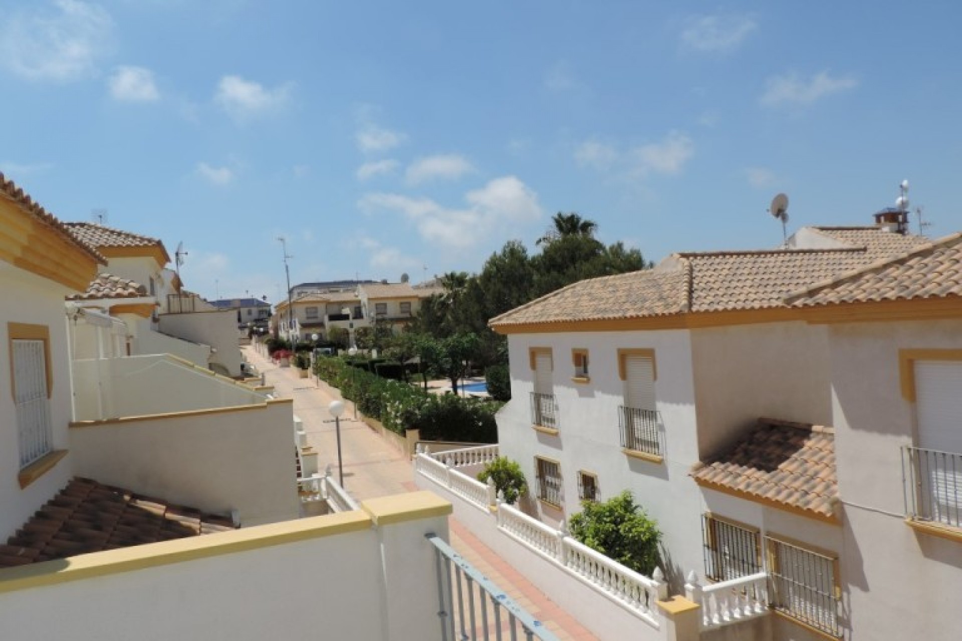 Cette Face du Sud-Ouest, maison mitoyenne de trois chambres à Los Altos est situé sur l'Orihuela Costa, à proximité de la Floride, Punta Prima et de Torrevieja. Situé au sein de la section locale de 1/2 km et les équipements disponibles à proximité, et à seulement 5 minutes de route des plages les plus proches, sans oublier le grand choix de parcours de golf dans les environs. Cette propriété comprend une cuisine indépendante entièrement équipée, buanderie séparée; famille salon/salle à manger avec accès à la terrasse ombragée avant et carrelées de faible maintenance jardin, idéal pour manger à l'extérieur; deux chambres doubles, une chambre à coucher individuelle; et deux salles de bains. Le solarium est un vaste espace, idéal pour les soirées et BBQ avec vue sur les environs! De plus, les chambres sont dotées de la climatisation, de penderies et d'un privé, sous sol Espace de parking avec salle de stockage...