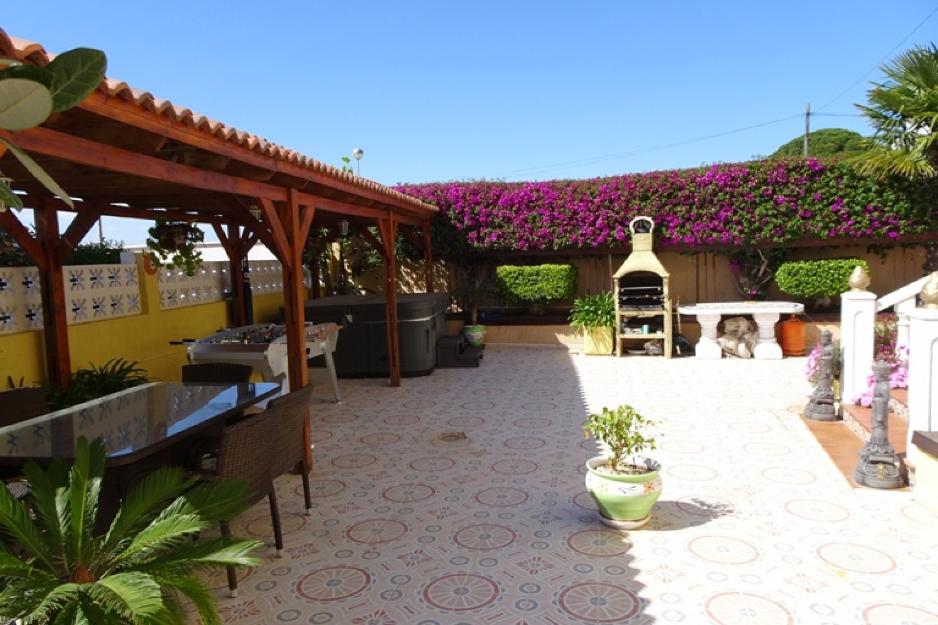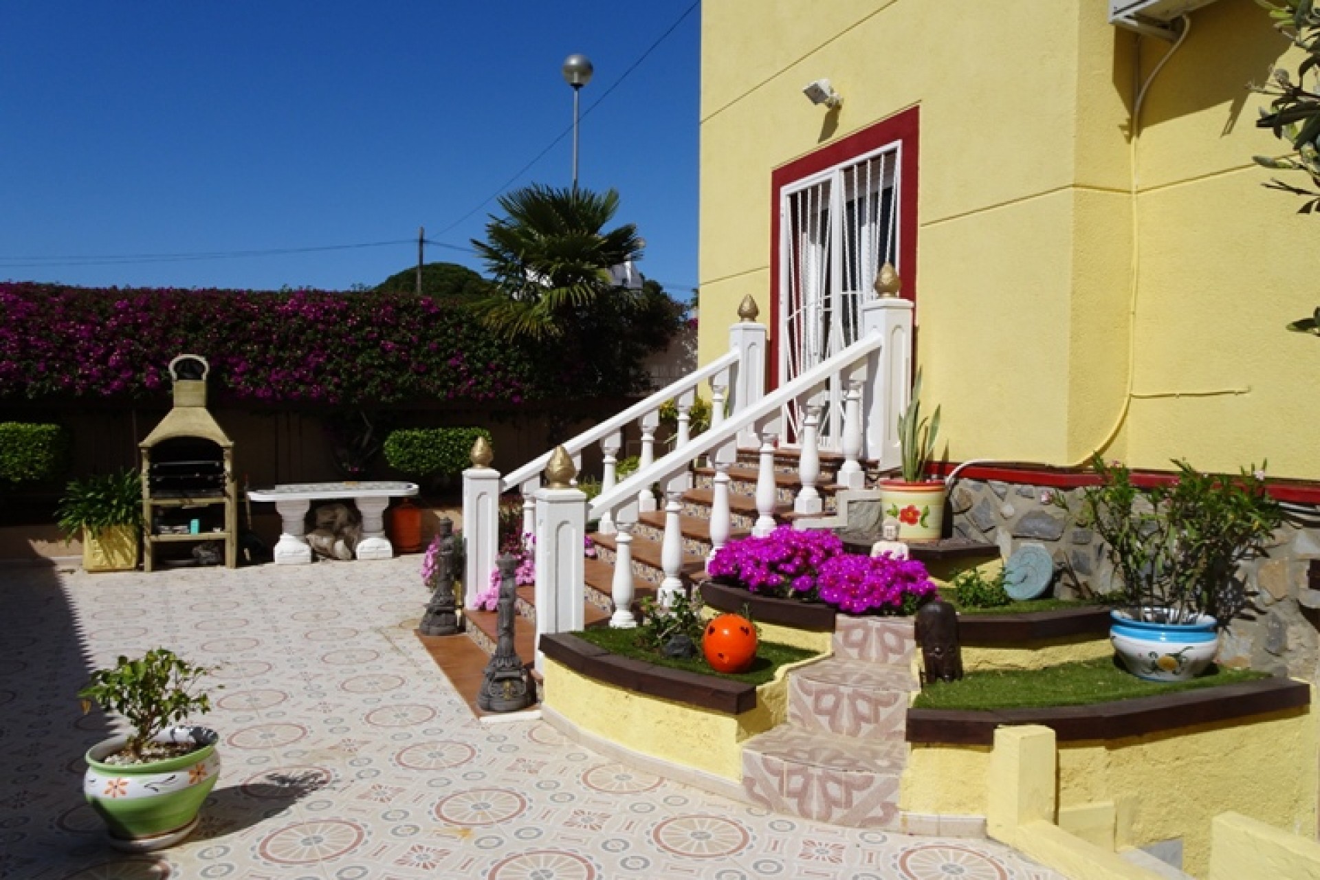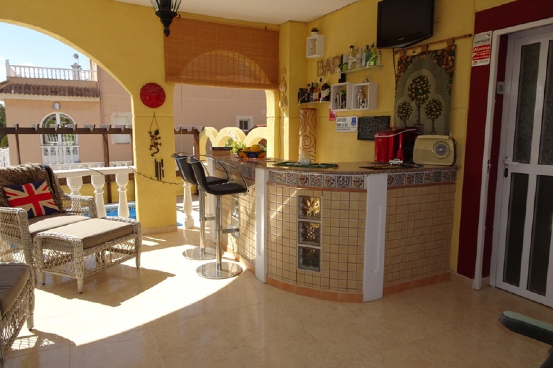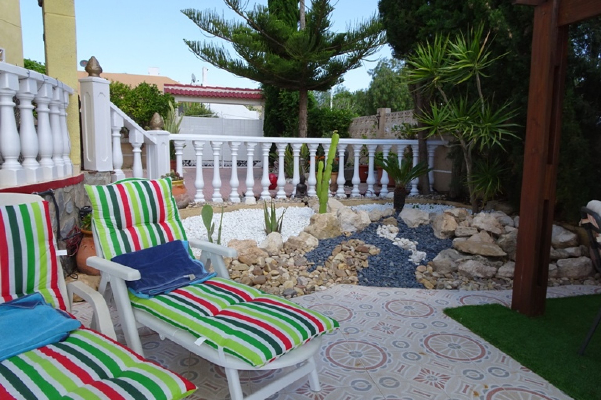 Ce coin, plein sud, Trois Chambres Villa individuelle à Monte Azul est situé sur un quartier calme et résidentiel, l'urbanisation très juste à l'extérieur des villes de Ciudad Quesada et Benijofar. Situé à quelques minutes en voiture ou 20 minutes à pied de la station de services tels que les bars, restaurants, boutiques, supermarchés et plus… Les plages les plus proches se trouvent également à moins de 15 minutes en voiture à Guardamar del Segura. Cette belle propriété se compose d'une cuisine équipée/salle à manger, qui a été modernisé à un niveau élevé, ce qui conduit à travers une double portes sur le jardin & barbecue, salon séparé avec accès par l'avant, terrasse couverte d'une grande taille, équipé d'un bar avec tabourets et aussi beaucoup d'espace pour manger dehors ; un deuxième salon, actuellement utilisé comme salle de télévision ; trois chambres doubles au premier étage, le maître avec salle de bains privative et d''une terrasse privée, avec une vue magnifique sur les environs au-delà de la campagne, une salle de bains familiale, une salle de douche et un vestiaire ! ! ! L'extérieur est un sol carrelé principalement, et couvertes de jardin d'environ 515m2, aménagé avec des plantes, arbres, arbustes, fleurs, d'une salle de 10 x 4 piscine, parking pour deux voitures, une caractéristique gazebo ombragé idéal pour manger en plein air, un espace barbecue et bien sûr beaucoup d'espace pour s'asseoir, se détendre, bronzer et profiter de la vie espagnole et le soleil ! ! ! Extras : placards, climatisation dans tout, le gaz naturel, des barbecues, grilles de porte fenêtre, un Jacuzzi et une salle de stockage dans le cadre de construire… Occasion ! ! !