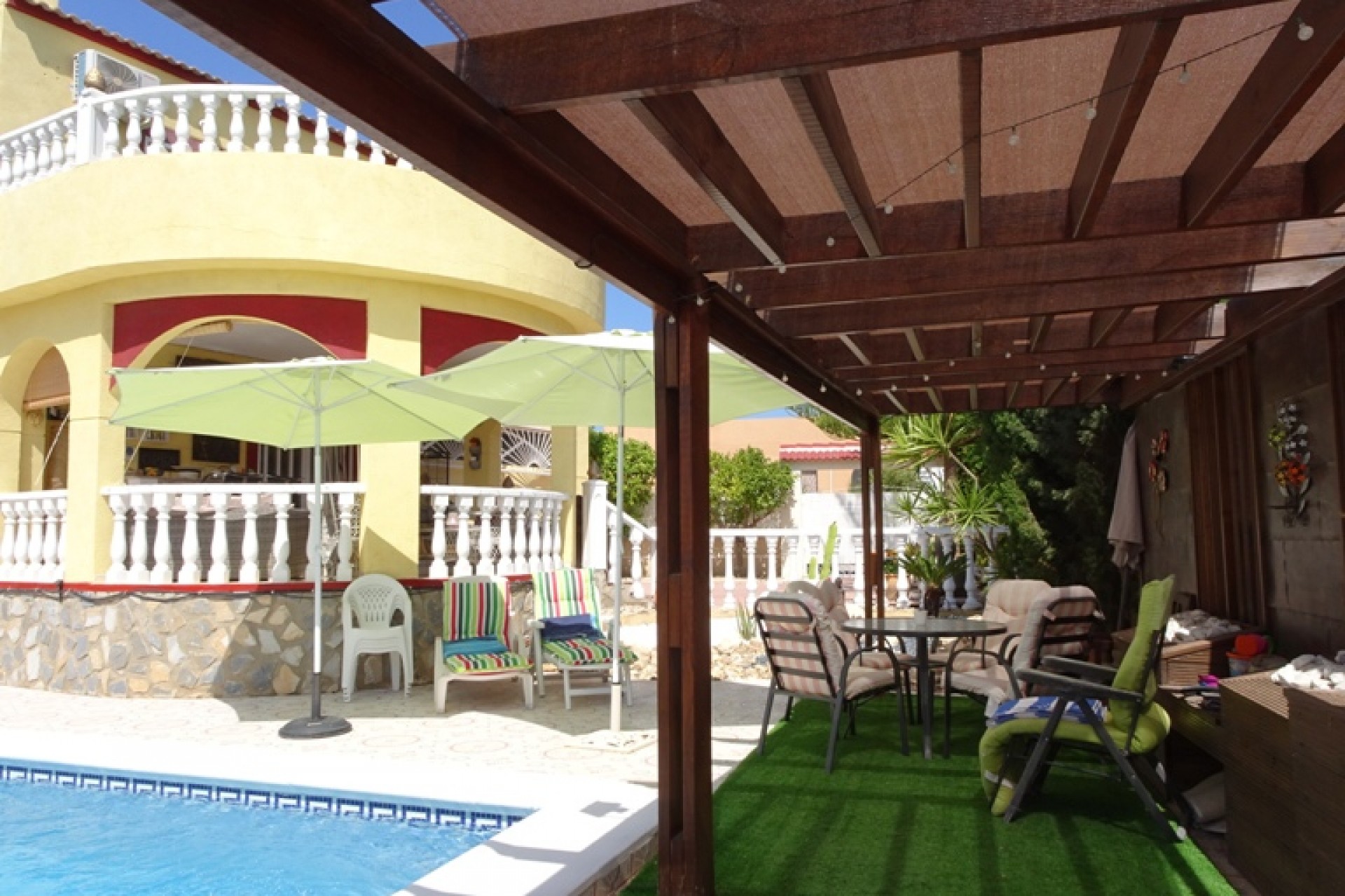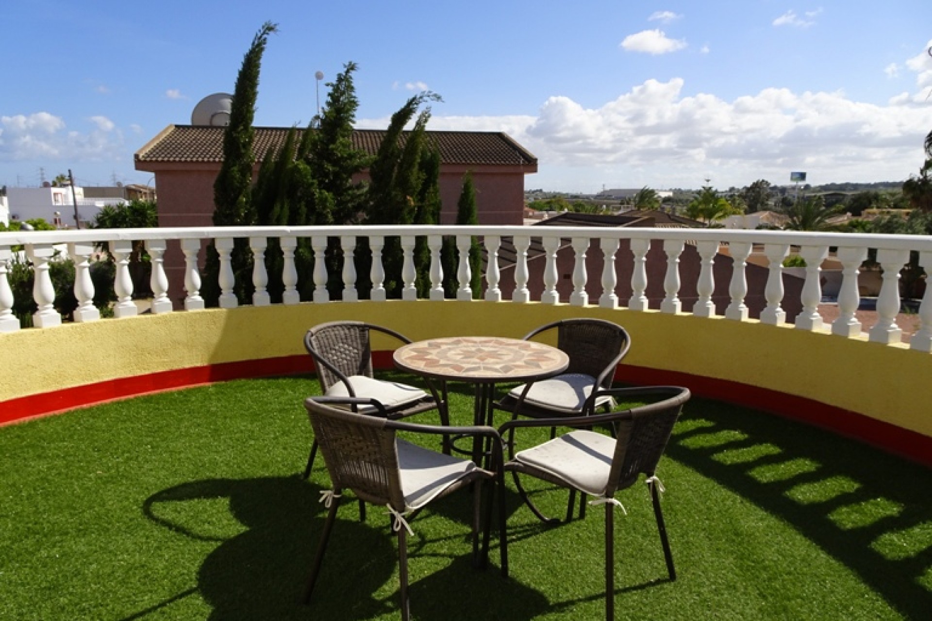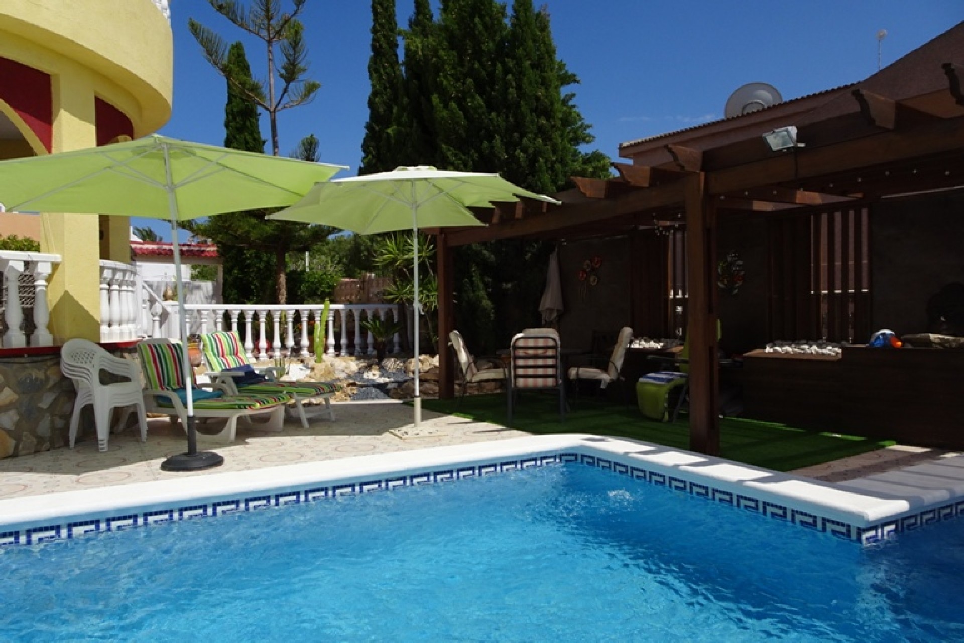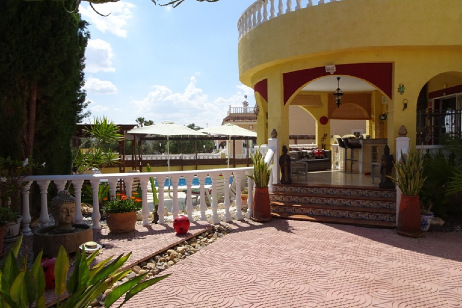 Ce coin, plein sud, Trois Chambres Villa individuelle à Monte Azul est situé sur un quartier calme et résidentiel, l'urbanisation très juste à l'extérieur des villes de Ciudad Quesada et Benijofar. Situé à quelques minutes en voiture ou 20 minutes à pied de la station de services tels que les bars, restaurants, boutiques, supermarchés et plus… Les plages les plus proches se trouvent également à moins de 15 minutes en voiture à Guardamar del Segura. Cette belle propriété se compose d'une cuisine équipée/salle à manger, qui a été modernisé à un niveau élevé, ce qui conduit à travers une double portes sur le jardin & barbecue, salon séparé avec accès par l'avant, terrasse couverte d'une grande taille, équipé d'un bar avec tabourets et aussi beaucoup d'espace pour manger dehors ; un deuxième salon, actuellement utilisé comme salle de télévision ; trois chambres doubles au premier étage, le maître avec salle de bains privative et d''une terrasse privée, avec une vue magnifique sur les environs au-delà de la campagne, une salle de bains familiale, une salle de douche et un vestiaire ! ! ! L'extérieur est un sol carrelé principalement, et couvertes de jardin d'environ 515m2, aménagé avec des plantes, arbres, arbustes, fleurs, d'une salle de 10 x 4 piscine, parking pour deux voitures, une caractéristique gazebo ombragé idéal pour manger en plein air, un espace barbecue et bien sûr beaucoup d'espace pour s'asseoir, se détendre, bronzer et profiter de la vie espagnole et le soleil ! ! ! Extras : placards, climatisation dans tout, le gaz naturel, des barbecues, grilles de porte fenêtre, un Jacuzzi et une salle de stockage dans le cadre de construire… Occasion ! ! !