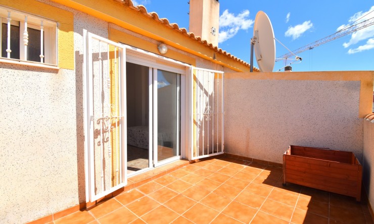 Cette maison de ville de trois chambres, exposée plein sud, à Los Altos, est située dans une résidence sécurisée prisée, à seulement 5 minutes à pied d'un supermarché, du magasin de meubles JYSK et de nombreux cafés-bars. Le célèbre centre commercial La Zenia Boulevard est à seulement 5 minutes en voiture, avec de belles plages et plusieurs parcours de golf accessibles en environ 10 minutes. La propriété, répartie sur trois niveaux, offre un agencement lumineux et spacieux. Au rez-de-chaussée, on trouve un salon/salle à manger avec cheminée et un escalier menant aux étages, une cuisine séparée équipée avec accès à une buanderie et un vestiaire pratique. Le premier étage comprend deux chambres doubles – la chambre principale avec accès à une terrasse privée – et une salle de bains familiale. Le deuxième étage accueille une autre chambre double avec salle de douche attenante et terrasse privative, ainsi que la climatisation. Elle comprend également des placards intégrés, un jardin carrelé à l'avant et sur le côté, idéal pour un espace extérieur facile d'entretien, et l'accès à une belle piscine commune. Une propriété idéale pour des vacances ou une résidence principale au cœur de la Costa Blanca Sud.