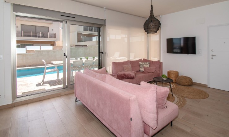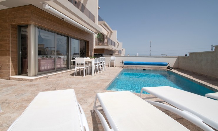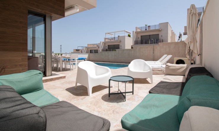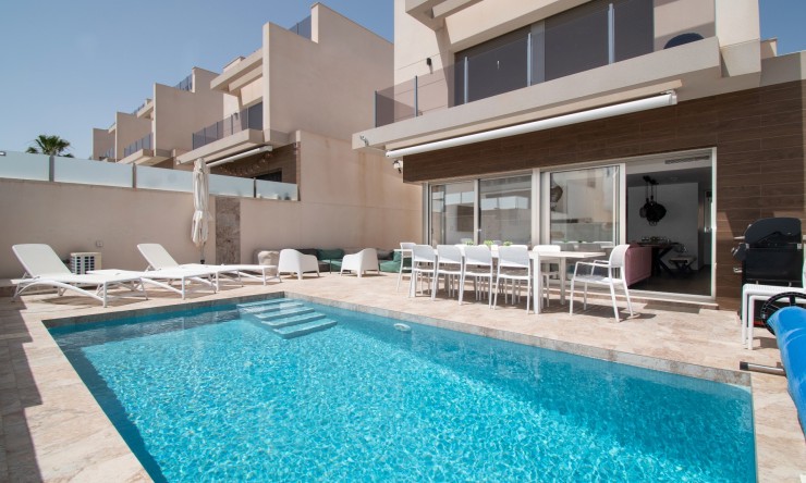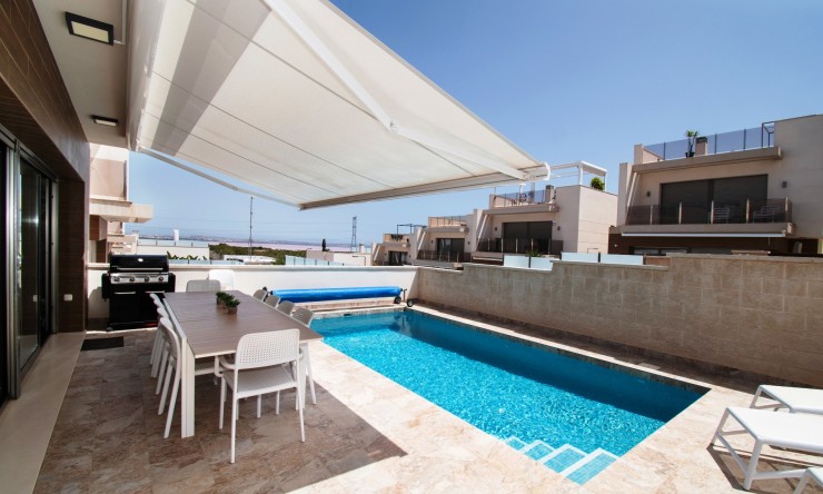 Cette villa individuelle de cinq chambres, orientée est, est située à Villamartin dans le quartier très prisé d'Orihuela Costa, sur la Costa Blanca Sud. Elle se trouve à seulement 10 minutes à pied des commodités et à seulement 5 minutes en voiture des magnifiques plages de sable fin de la côte. Construite en 2021, cette villa moderne et élégante offre une surface habitable généreuse de 190 m², conçue pour une vie de famille et des réceptions. Le niveau principal comprend une cuisine ouverte entièrement équipée, un salon/salle à manger lumineux et spacieux avec climatisation, ainsi qu'un accès direct par des portes coulissantes à un grand patio carrelé avec une impressionnante piscine privée de 8 x 4. Parmi les cinq chambres, trois sont climatisées et toutes disposent de placards intégrés. Trois d'entre elles donnent également accès à des terrasses privées avec une vue imprenable sur le lac salé. La maison dispose de quatre salles d'eau contemporaines. Le sous-sol offre un espace supplémentaire exceptionnel, comprenant une buanderie séparée, un cellier et un deuxième espace de vie et de divertissement, idéal pour les invités ou les activités familiales. Un spacieux solarium couronne la propriété, offrant une vue panoramique sur les lacs salés, idéal pour se détendre ou profiter du soleil espagnol. À l'extérieur, le jardin carrelé facile d'entretien offre un vaste espace de vie extérieur, et la propriété bénéficie également d'un parking fermé hors voirie. Cette superbe maison est un choix idéal comme résidence principale, résidence de vacances de luxe ou opportunité d'investissement dans un emplacement privilégié sur la Costa Blanca Sud.