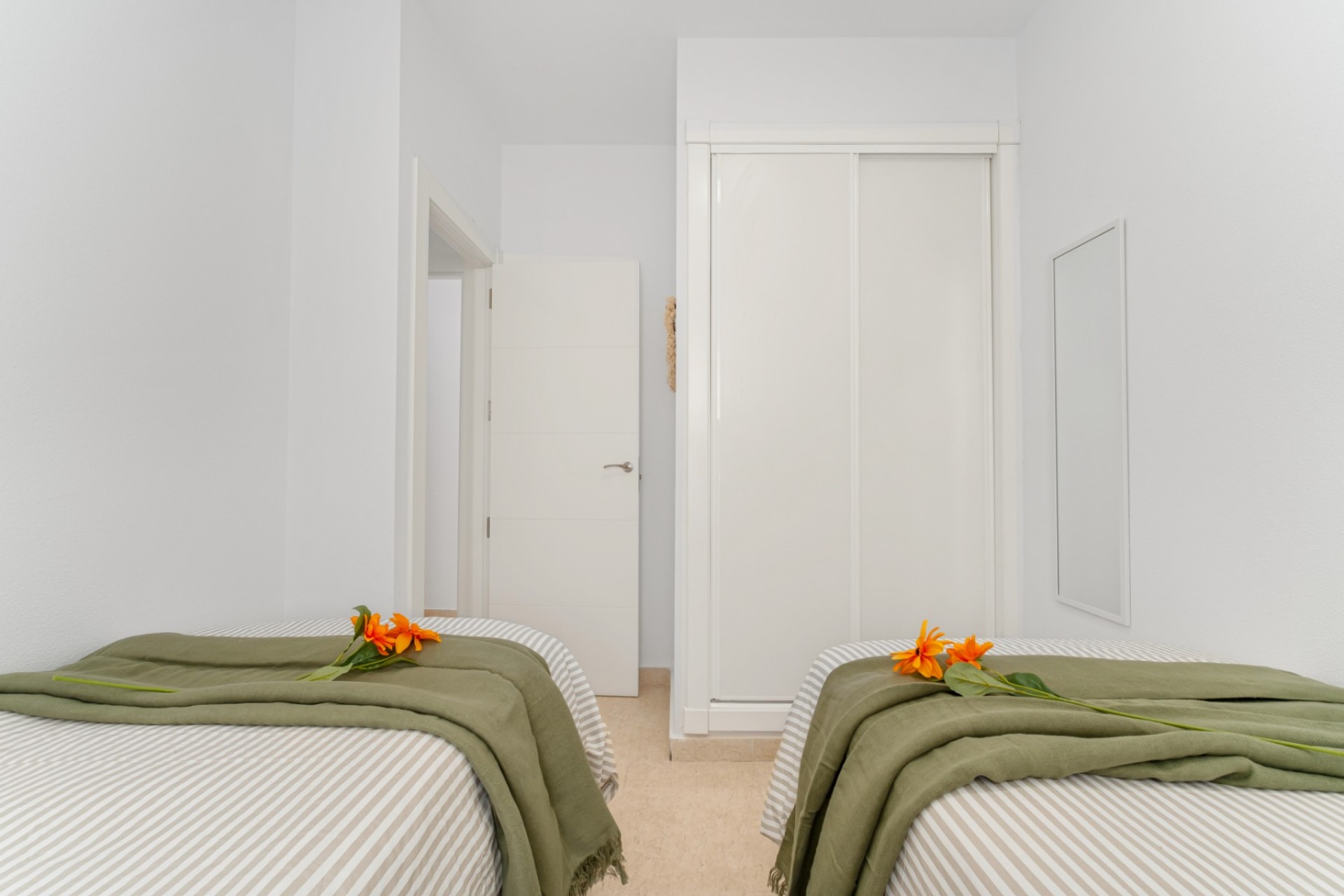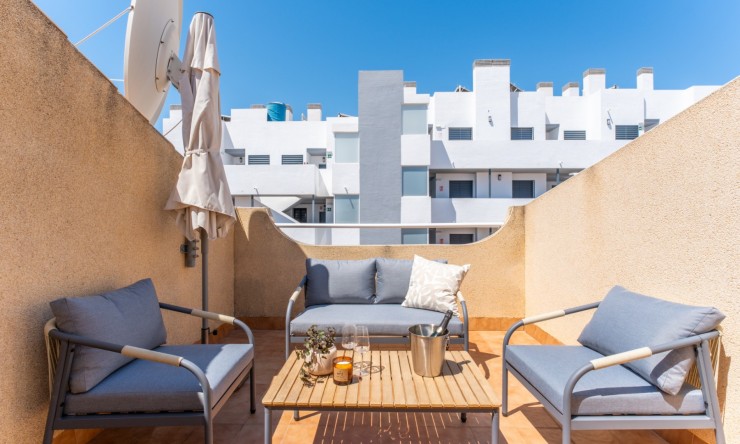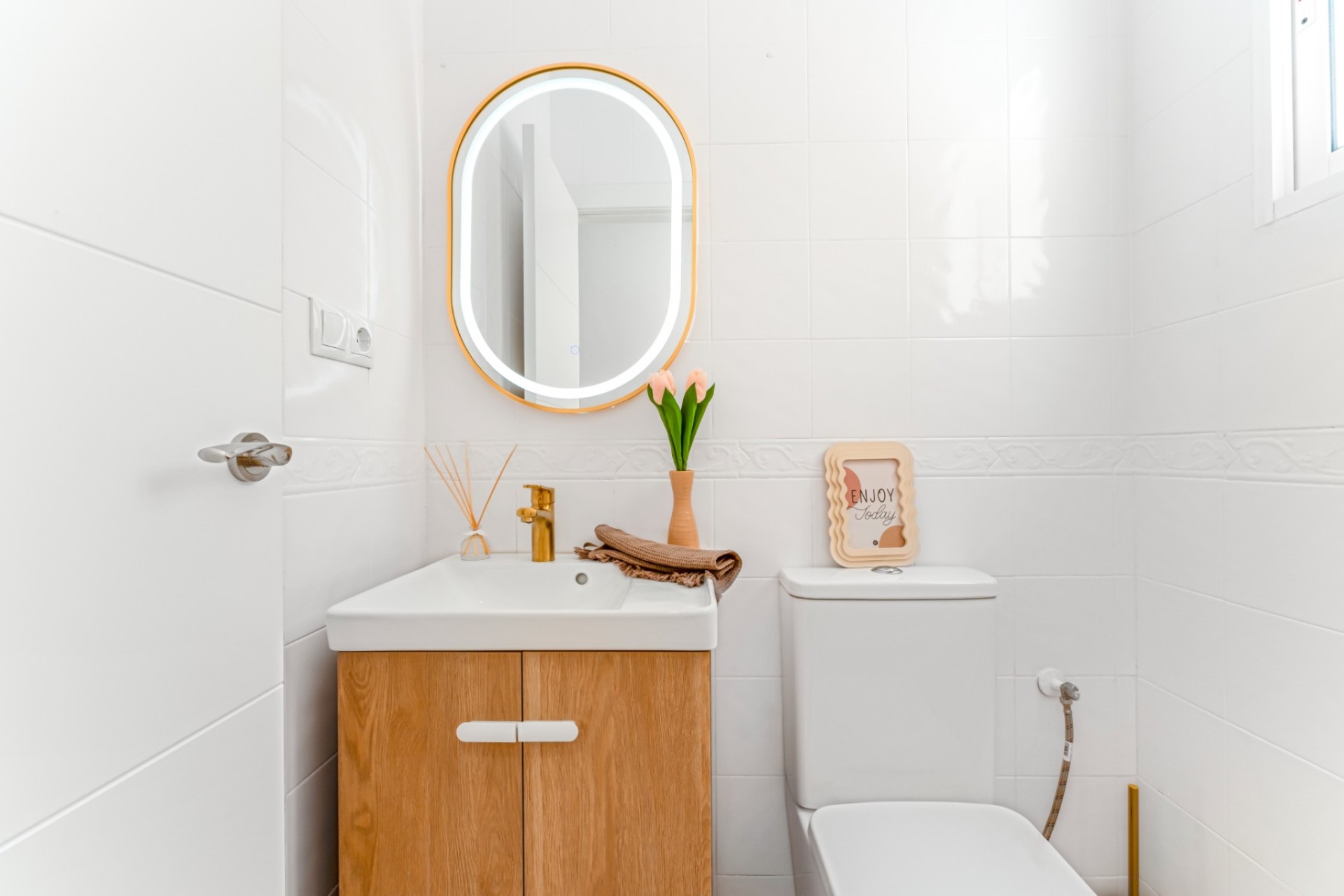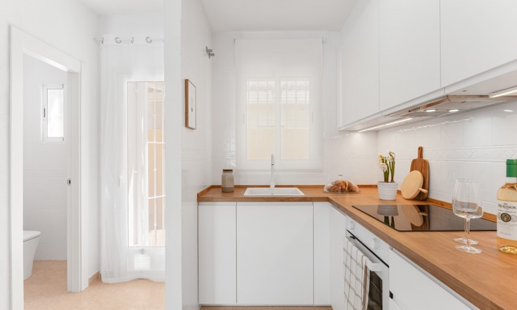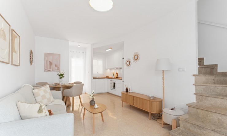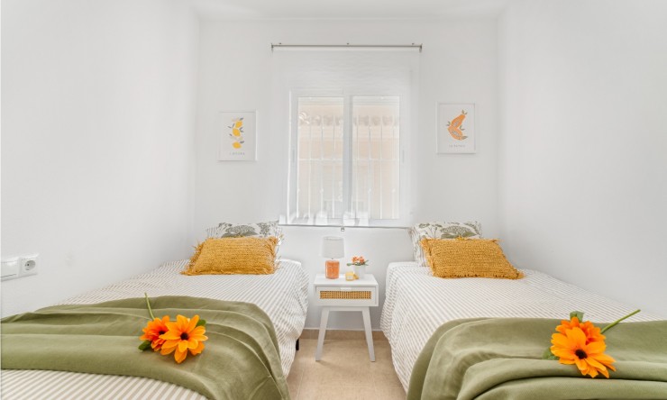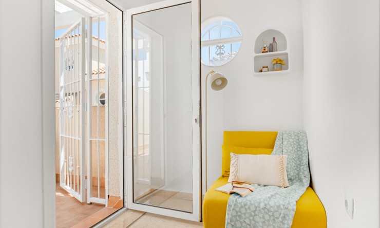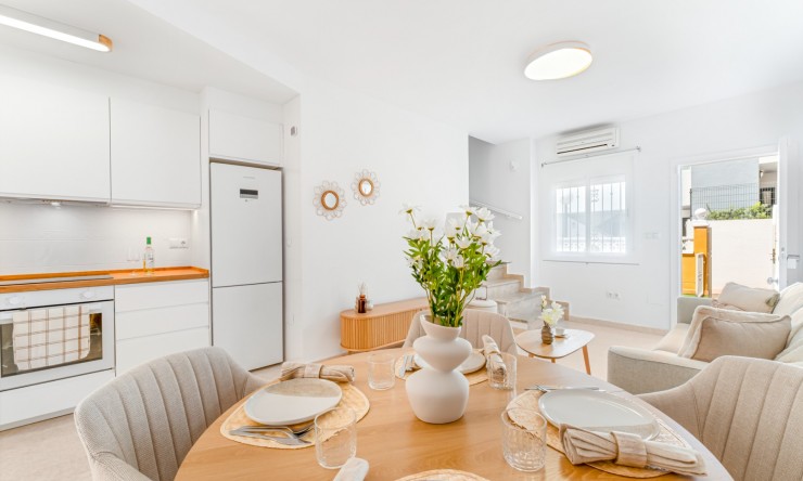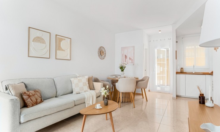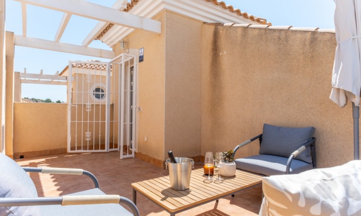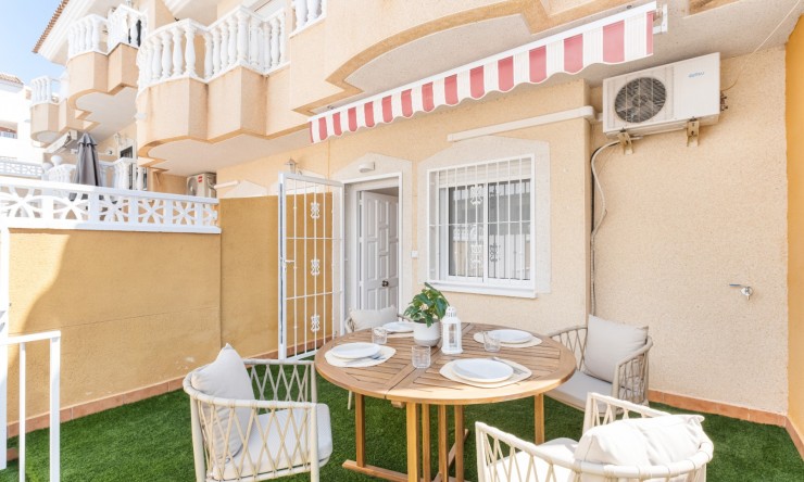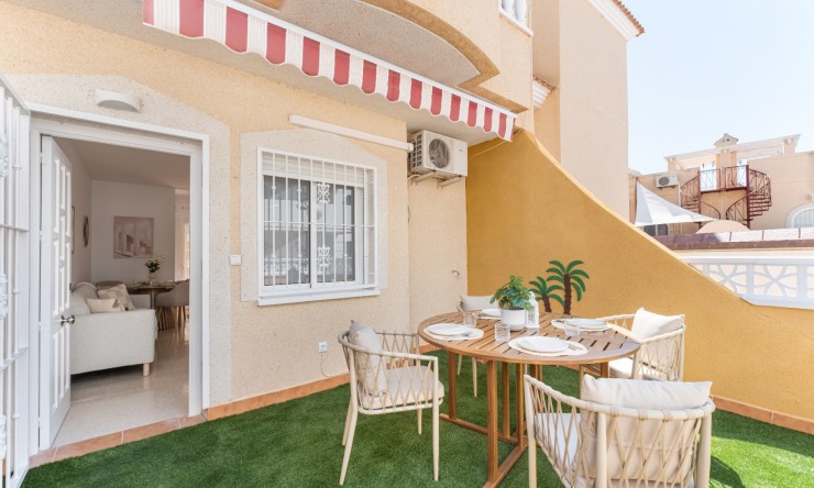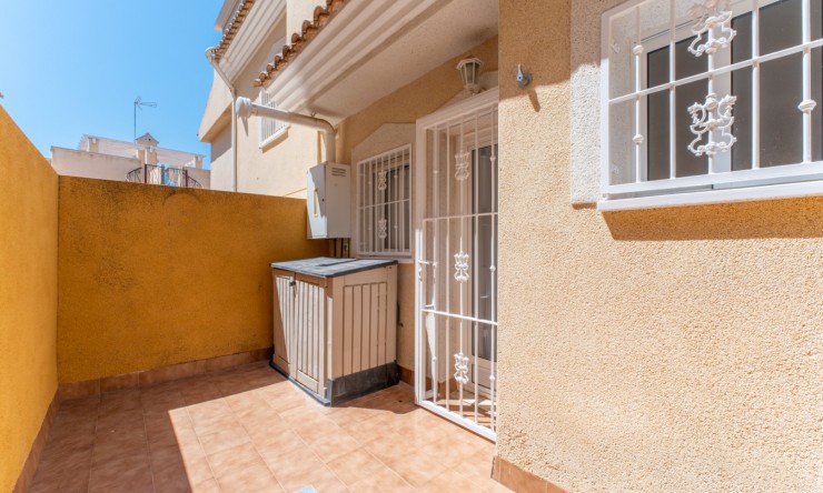 Cette maison de ville de deux chambres, orientée ouest, à Villamartin, est située à 10 minutes à pied de plusieurs cafés, restaurants et d'une grande chaîne de supermarchés. Le centre commercial La Fuente est à seulement quelques minutes en voiture, et trois parcours de golf sont accessibles à moins de 5 minutes. Pour une séance shopping, le centre commercial La Zenia Boulevard est à 10 minutes et la côte est accessible en 10 minutes. Cette propriété rénovée et magnifiquement présentée offre une superficie de 80 m². Le séjour est équipé d'un escalier menant au premier étage et est climatisé. La cuisine ouverte équipée avec buanderie et accès à un patio arrière est également disponible. Un vestiaire pratique complète le rez-de-chaussée. Au premier étage, vous trouverez deux chambres doubles avec placards intégrés. La chambre principale est climatisée et donne accès à une terrasse. Une salle de douche moderne dessert les deux chambres. Le solarium de 17 m² est accessible par la chambre principale. À l'extérieur, le jardin avant est doté de gazon synthétique et d'un parking hors voirie. Il y a également un cellier pratique de 14 m². Les résidents ont accès à une piscine commune. Cette propriété est située sur la Costa Blanca Sud.