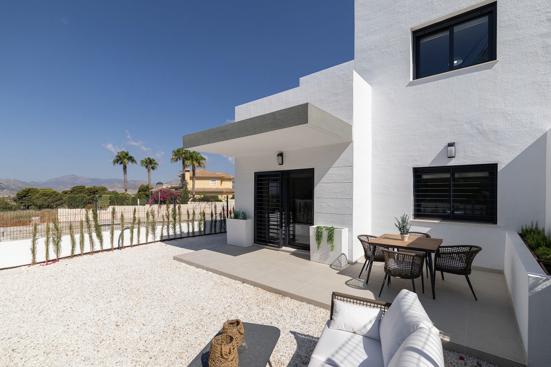 Les logements sont équipés de menuiseries extérieures en PVC gris, de volets en aluminium, de double vitrage avec chambre étanche, de grilles de sécurité au rez-de-chaussée, de portails d'entrée pour les piétons et les véhicules, de garde-corps de protection sur les pentes et dans les escaliers, de sols en grès antidérapants sur les porches et les entrées, et d'un aménagement paysager avec système d'arrosage automatique.