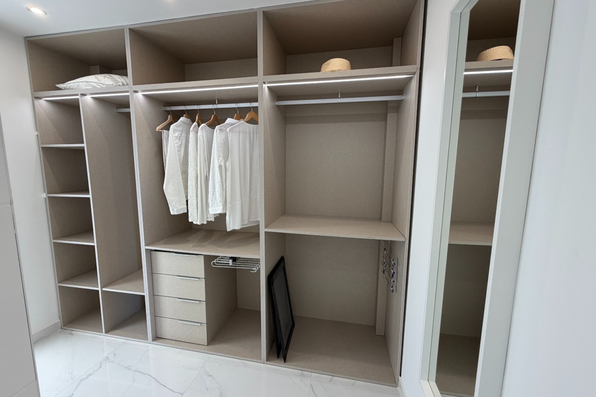 Cette villa moderne individuelle de trois chambres, située à La Laguna, bénéficie d'un emplacement privilégié et pratique sur la Costa Blanca Sud. À seulement 3 minutes à pied d'un grand supermarché, à 5 minutes en voiture de la rue principale de Ciudad Quesada et de ses nombreux commerces, à 8 minutes en voiture du golf de La Marquesa et à seulement 10 minutes des magnifiques plages, cette villa lumineuse et impeccablement entretenue offre une surface habitable de 114 m² et est accessible par une terrasse d'entrée couverte. À l'intérieur, le salon profite d'une superbe baie vitrée donnant sur la piscine, ainsi que de portes coulissantes vitrées doubles offrant un accès direct à l'extérieur. La cuisine ouverte, bien équipée, comprend un bar et s'ouvre sur la salle à manger, créant un espace idéal pour un mode de vie moderne. Le rez-de-chaussée comprend également une buanderie, une chambre double et une salle de douche familiale, avec un escalier menant au premier étage. À l'étage, se trouvent deux autres chambres doubles, dont une luxueuse suite parentale avec dressing et portes coulissantes vitrées doubles donnant sur une terrasse privée. Une porte coulissante vitrée donne accès à une élégante salle de douche avec double vasque et WC séparés. De ce niveau, on accède à un solarium privé, équipé d'un store rétractable et offrant une vue imprenable sur les lacs salés et la campagne environnante. Située sur un terrain de 212 m² paysagé et carrelé, nécessitant peu d'entretien, la propriété comprend une piscine privée, une pelouse synthétique, un espace barbecue en pierre et un parking privé. La climatisation gainable assure un confort optimal toute l'année. Cette superbe villa moderne offre un cadre de vie élégant dans un emplacement privilégié sur la Costa Blanca Sud, idéale comme résidence principale ou secondaire.