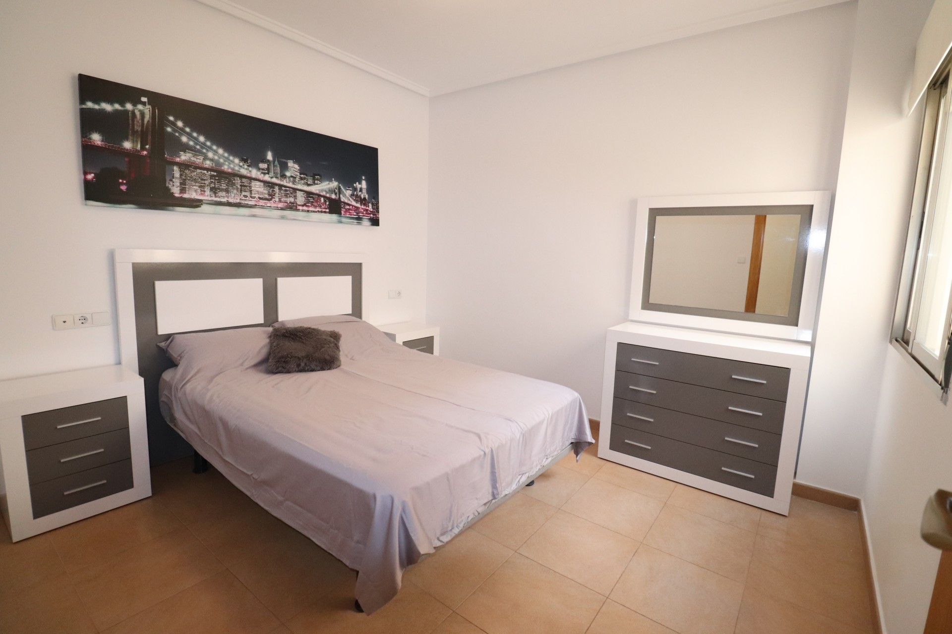 Dit moderne, gelegen op het westen, 2 slaapkamer penthouse appartement in Los Palacios ligt in het hart van deze traditionele Spaanse stad, dichtbij Rojales, Benijofar en Formentera del Segura. Gelegen op minder dan een minuut lopen van een breed scala aan bars, restaurants, winkels, belangrijkste merk supermarkten, kapsalons en nog veel meer... De kust en het strand van Guardamar del Segura ligt op minder dan 15 minuten rijden. Dit complex beschikt over een Amerikaanse keuken, zeer ruime woon/eetkamer met schuifpui naar het overdekte, eind terras, waar u een panoramisch uitzicht over de hele omgeving en de bergen, met een schilderachtige zonsondergang elke nacht; twee dubbele slaapkamers, en een stijlvolle badkamer. Er is ook een gemeenschappelijke dak solarium voor BBQ's en zonnebaden, weer met de wenselijke uitzicht! Extras met dit terrein zijn alle meubels, witgoed, vooraf geïnstalleerde airconditioning, inbouwkasten in de ouderslaapkamer en een aparte berging van een grote maat... Een geweldig pand, een grote maat, op een ideale locatie!