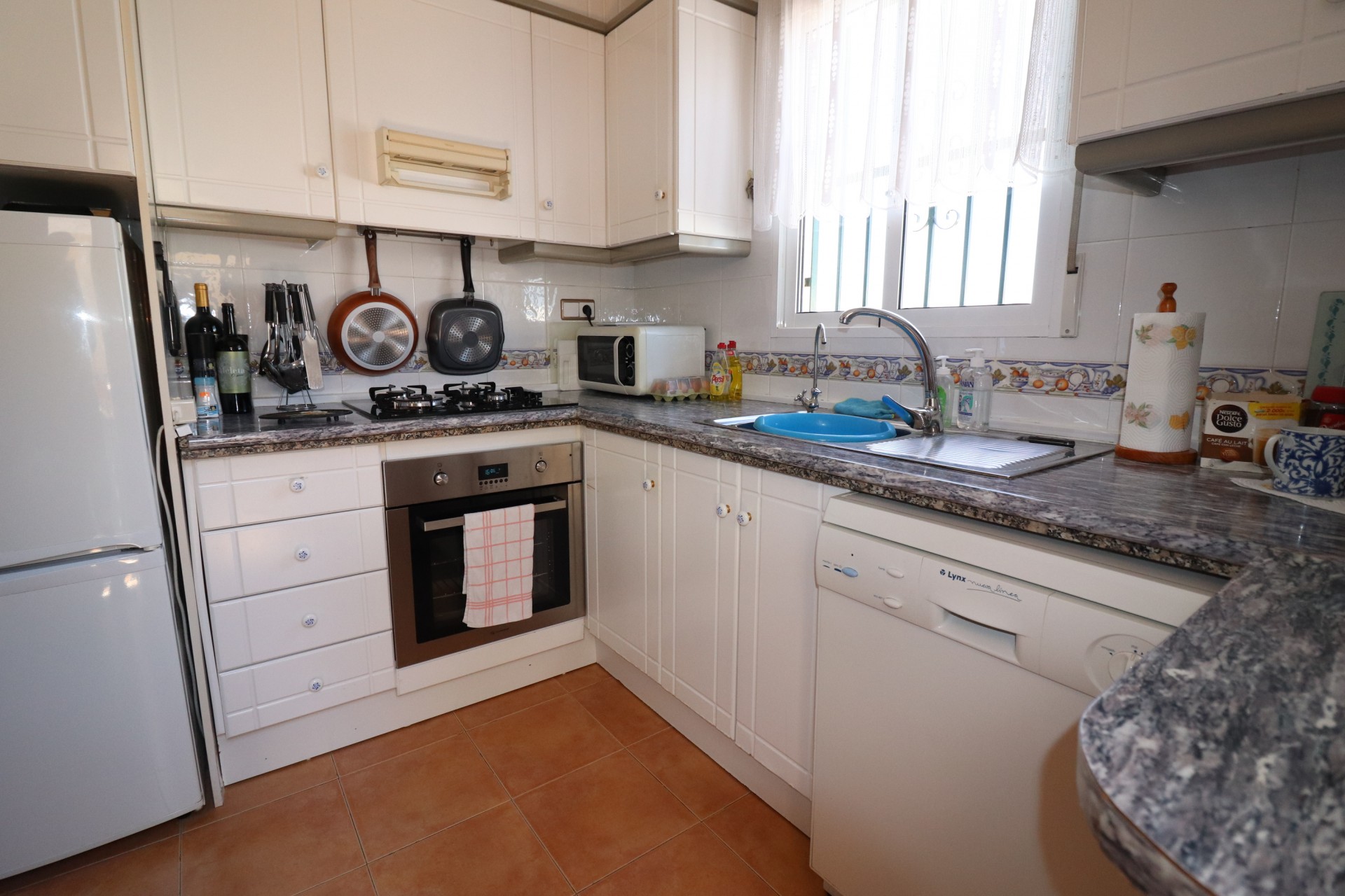 Deze mooie vrijstaande villa met drie slaapkamers in Montebello ligt in een schilderachtige, residentiële urbanisatie, tussen het dorp Algorfa en de populaire, bekende wijk Ciudad Quesada, elk bereikbaar binnen een paar minuten rijden, waar u vele voorzieningen + faciliteiten kunt vinden . Op de urb zelf is een lokaal café, bar, restaurant, kappers, gemeenschappelijk zwembad, voetbalveld, speeltuin en meer ... Het pand zelf bestaat uit een aparte volledig ingerichte keuken, met een achterdeur naar de tuin; zeer ruime eethoek die leidt naar de open woonkamer; of aan de voorkant, overdekt en overdekt terras, dat een ideale winterkamer heeft gecreëerd, met een prachtig open uitzicht over de privétuin, het zwembad en ononderbroken citrusboomgaarden direct aan de voorkant; drie dubbele slaapkamers, waarvan één op de begane grond, terwijl een andere op de eerste verdieping een Juliette balkon heeft, met die geweldige uitzichten; een badkamer beneden; een familie doucheruimte; en een solarium, ideaal om te zonnebaden, en waar u echt het gewenste uitzicht over de citrusboomgaarden en het platteland kunt waarderen ... Buiten is een betegelde en grind onderhoudsarme tuin met een paar planten, bomen, struiken, off-road parking, voldoende eetgelegenheden / BBQ ruimte en een prachtig privé zwembad ... Met vele extra's inbegrepen is dit een geweldige koop!