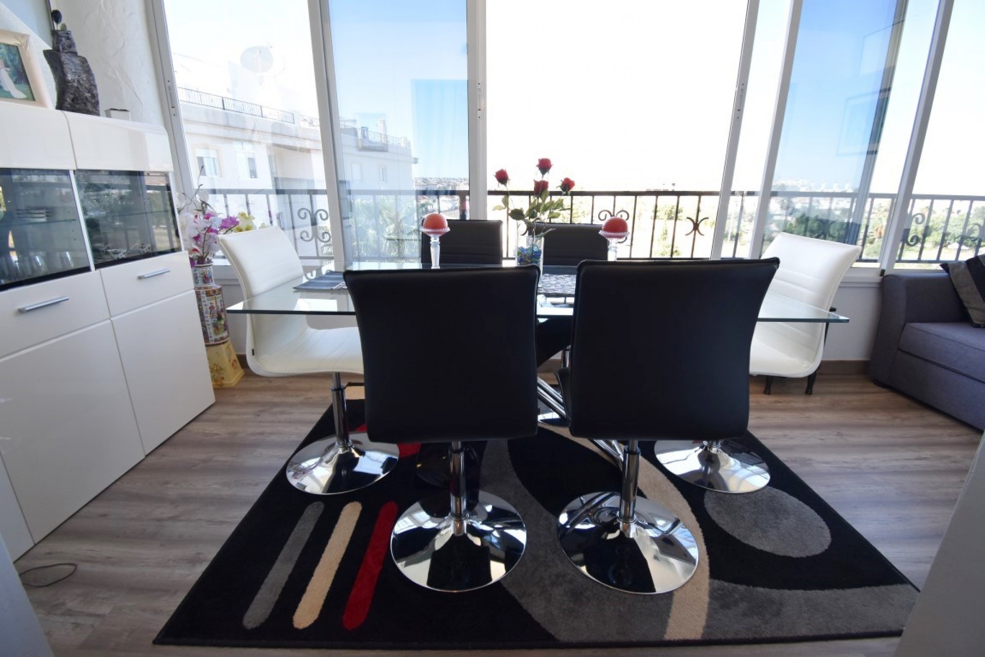 Een ruim appartement met twee slaapkamers op de bovenste verdieping in Playa Flamenca, op 5 minuten met de auto van de stranden en alle grote voorzieningen aan de Orihuela Costa, waaronder het geweldige winkelcentrum La Zenia Boulevard; slechts 5 minuten lopen naar bars / restaurants / supermarkt en meer. Het appartement is mooi gepresenteerd en profiteert van een privé-solarium, het gebruik van een gemeenschappelijk zwembad en bestaat uit: lounge / eetkamer die uitkomt op het terras dat is beglaasd en momenteel wordt gebruikt als een eethoek; open goed ingerichte keuken met ontbijtbar; twee slaapkamers met ingebouwde kasten en plafondventilatoren; moderne familiedouche met inloopdouche. Het blok wordt geleverd met lift en zou een perfect vakantiehuis zijn vanwege de ligging en de nabijheid van alles, inclusief een scala aan golfbanen.