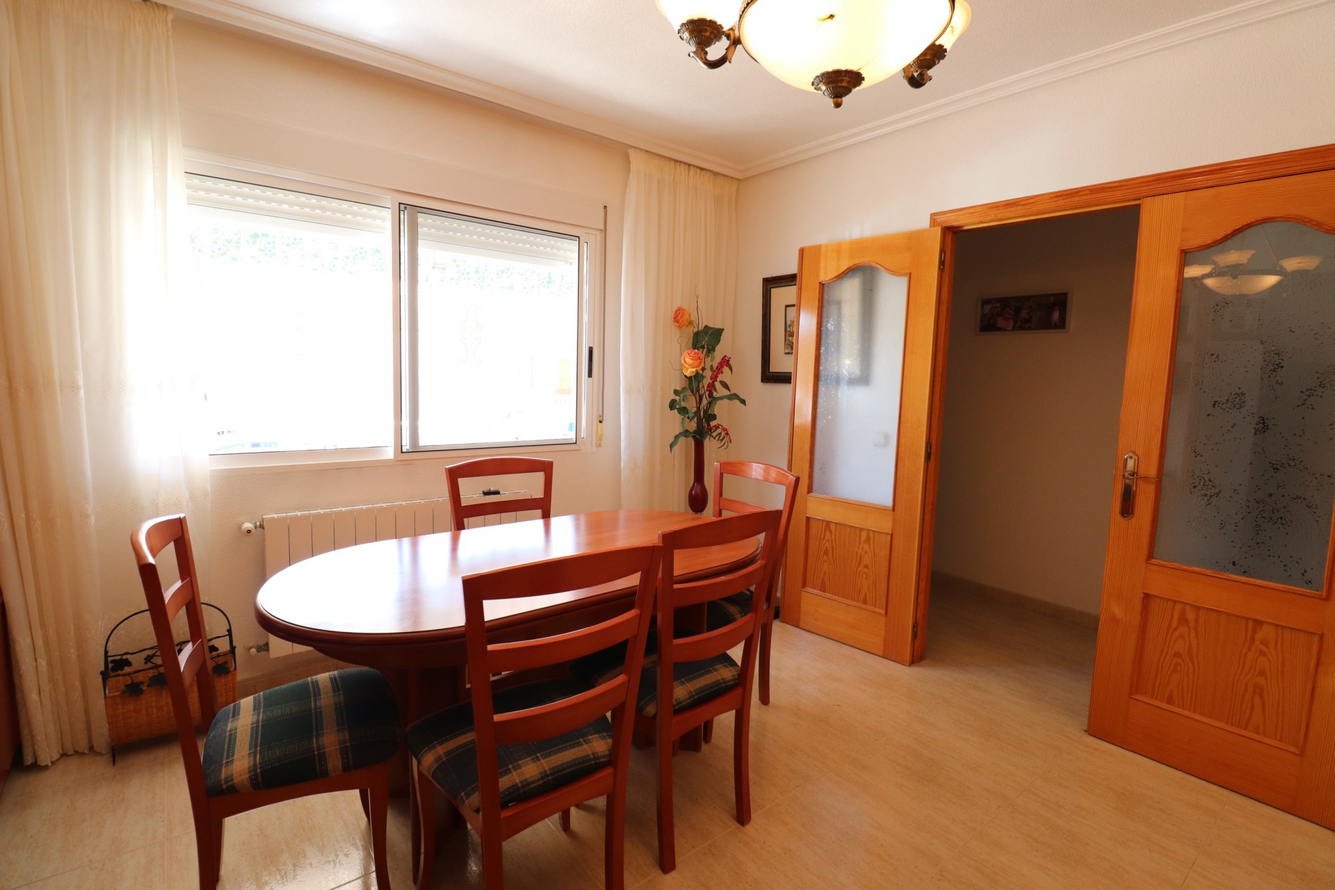 Deze vrijstaande villa met vier slaapkamers op het westen in Benijofar ligt in een populair gebied, tussen Rojales en Ciudad Quesada. Binnen 5 tot 10 minuten lopen naar alle voorzieningen van de stad, inclusief die van het commerciële centrum van Benimar. De dichtstbijzijnde stranden bevinden zich in Guardamar del Segura, op ongeveer 12 minuten rijden. Deze ruime woning omvat op de begane grond een aparte, volledig ingerichte, gezinskeuken met eethoek; aangrenzende bijkeuken net buiten, met deur naar de binnenplaats; ruime woon/eetkamer; entree met toegang naar de voorzijde, overdekt terras van een uitstekende grootte, perfect om buiten te eten; drie dubbele slaapkamers; en een familiebadkamer. Een trap vanaf de binnenplaats leidt naar de onderbouw en grote garage; met aparte vierde slaapkamer; en doucheruimte. Een externe trap vanaf de binnenplaats leidt weer naar het solarium op het dak, bedekt met zon en uitzicht op de bergen in de verte. Buiten is een onderhoudsvriendelijke tuin, met betegelde, grind en beplante gebieden! Extra's zijn onder meer inbouwkasten, airconditioning in de woonkamer, grills, plafondventilator en meer...