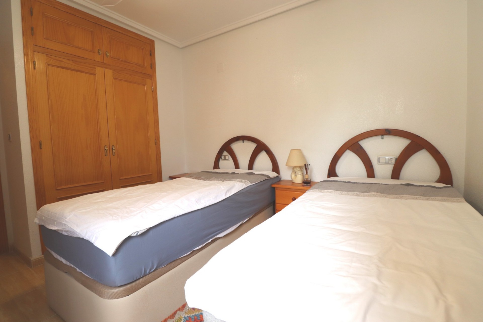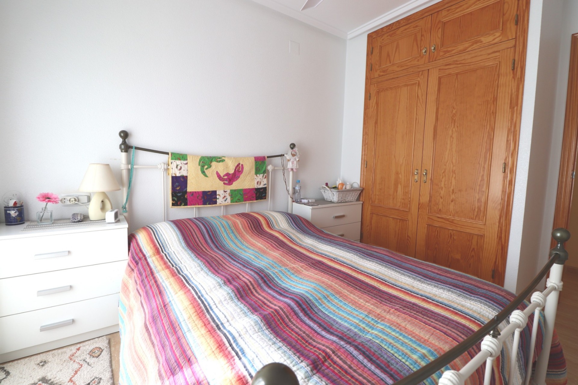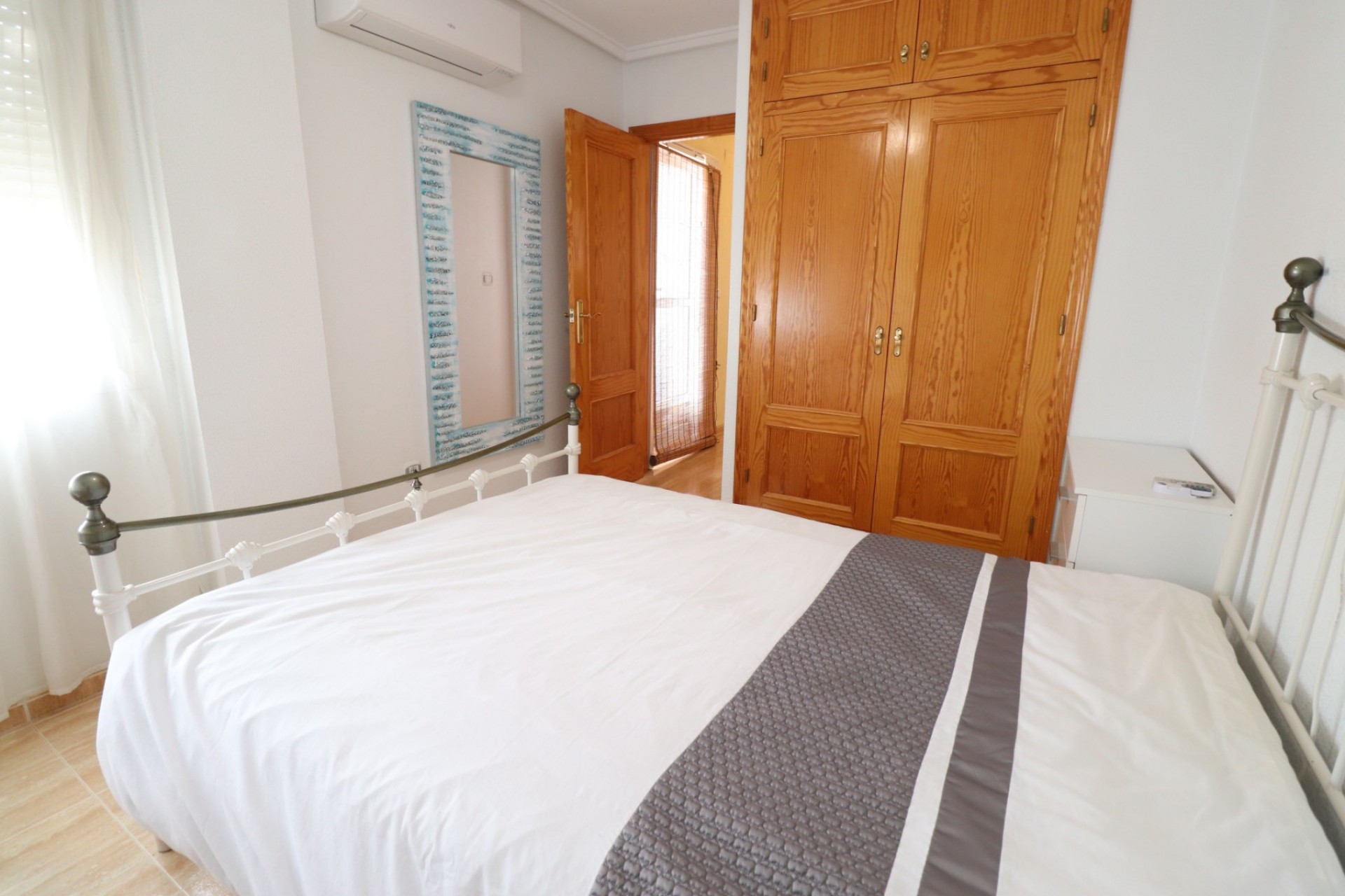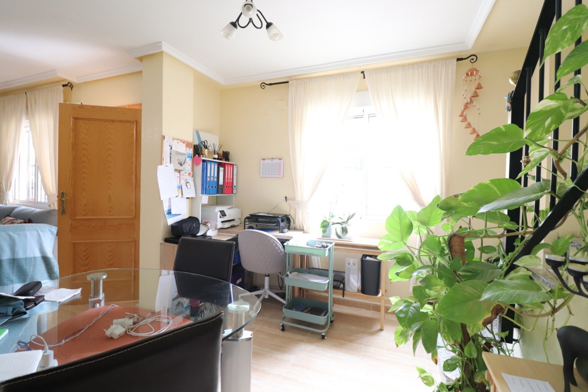 Deze op het oosten gelegen villa met drie slaapkamers en vier slaapkamers in Lo Crispin is gelegen in een rustige woonwijk, op slechts 5 minuten lopen van het lokale winkelcentrum met een selectie bars en restaurants. De populaire steden Benijófar en Ciudad Quesada liggen op slechts 5 minuten rijden, en Algorfa en het beroemde La Finca Golf Resort zijn in slechts 10 minuten te bereiken. De kust en de stranden liggen op ongeveer 15 minuten rijden. De woning, met een woonoppervlakte van ongeveer 95 m², is goed gepresenteerd en verdeeld over twee verdiepingen. Op de begane grond bevindt zich een beglaasd terras met getinte glazen gordijnen - perfect om het hele jaar door van de zon te genieten - dat leidt naar een ruime woon-/eetkamer met een trap naar de eerste verdieping. Een aparte ingerichte keuken heeft een deur naar de bijkeuken. Er is ook een tweepersoonsslaapkamer en een doucheruimte op de begane grond. Op de eerste verdieping vindt u nog twee tweepersoonsslaapkamers, een familiebadkamer en toegang tot een privéterras, ideaal om te ontspannen of van de zon te genieten. De tuin is een L-vormige, onderhoudsarme betegelde ruimte met parkeergelegenheid op eigen terrein. Deze goed onderhouden woning beschikt over inbouwkasten, recent geïnstalleerde airconditioning in de woonkamer en twee slaapkamers, en plafondventilatoren in alle kamers (geïnstalleerd in 2024) voor extra comfort. Deze mooie woning profiteert ook van toegang tot goed onderhouden gemeenschappelijke tuinen en een zwembad, waardoor het een ideale permanente woning, vakantiewoning of verhuurinvestering is aan de Costa Blanca Zuid.