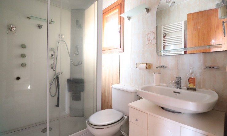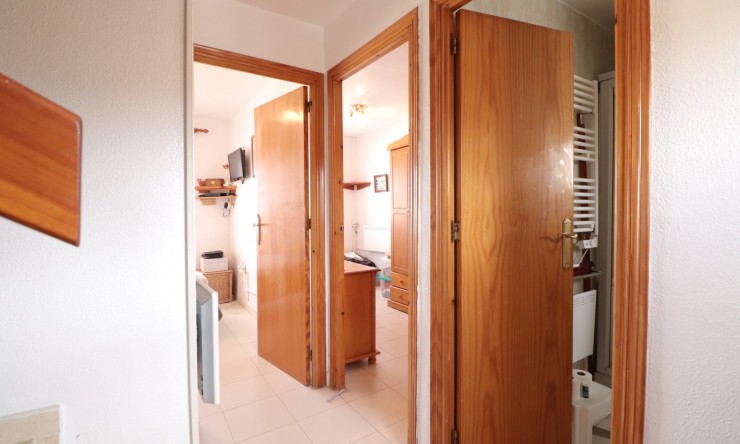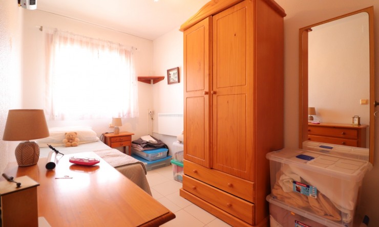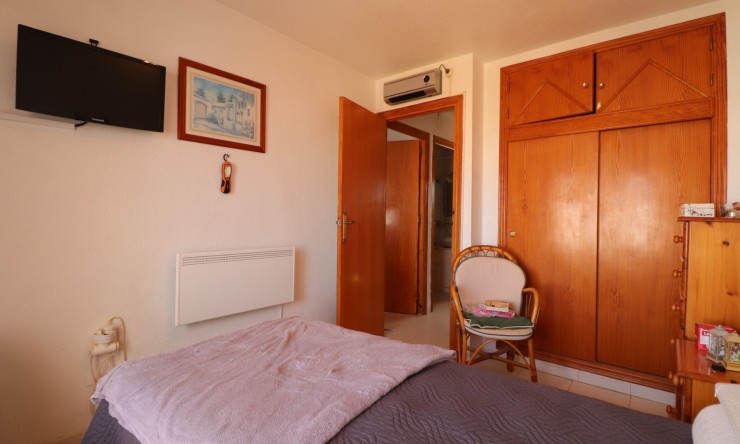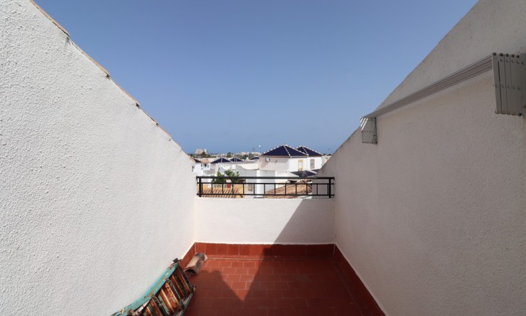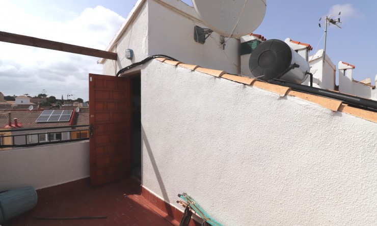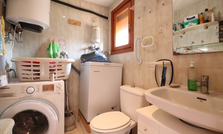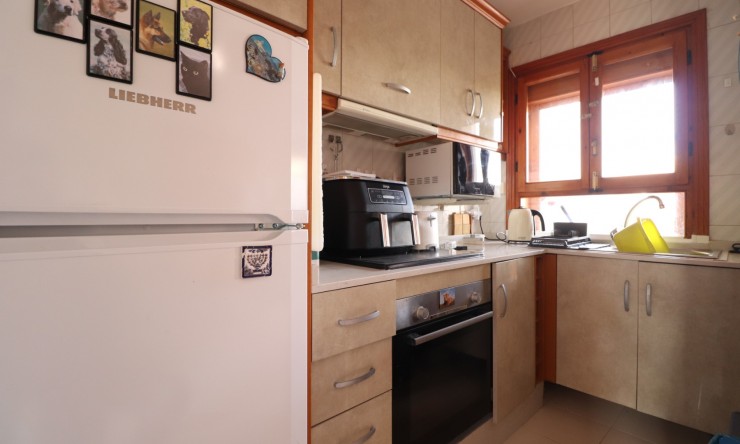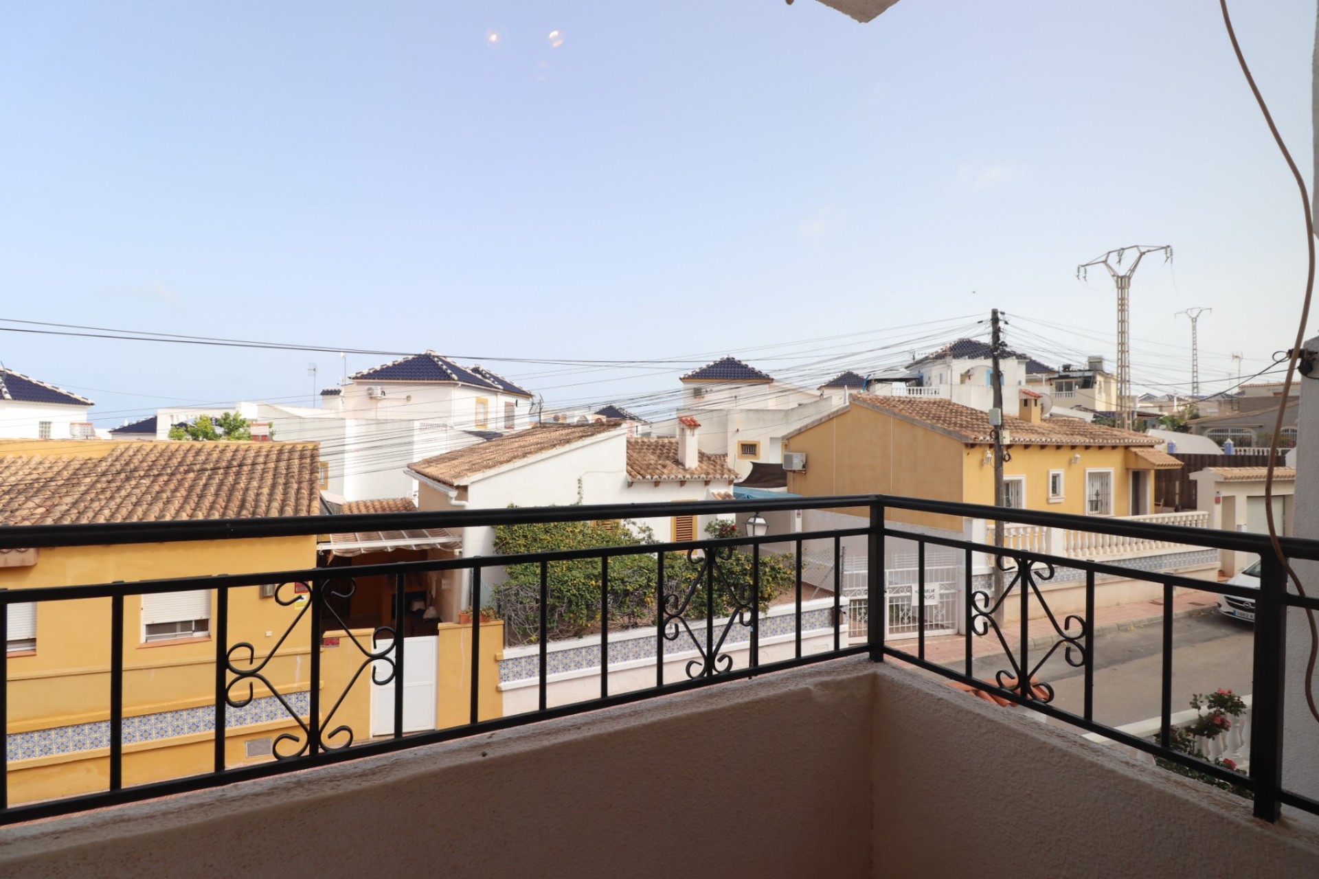 Deze op het oosten gelegen woning met twee slaapkamers in Los Balcones is ideaal gelegen aan de rand van Orihuela Costa, op slechts 5 minuten rijden van de stranden van Torrevieja en dicht bij het ziekenhuis van Torrevieja. Het winkelcentrum Filton ligt op slechts 5 minuten lopen en diverse golfbanen zijn binnen een straal van 15 minuten rijden te bereiken. De woning bestaat uit een overdekte veranda die leidt naar een lichte woonkamer met een hoekhaard met een elektrische inzethaard, een inbouwkeuken in Amerikaanse stijl en een lobby met toegang tot de eerste verdieping. Er is ook een doucheruimte op de begane grond en toegang tot de achtertuin, die zowel betegeld als met grind is aangelegd voor weinig onderhoud. Op de eerste verdieping bevinden zich twee tweepersoonsslaapkamers, elk met wandverwarming en inbouwkasten, waarvan één beschikt over een eigen terras. Een familiedouche completeert deze verdieping. Een buitentrap leidt naar het privé-solarium met uitzicht op het gemeenschappelijke zwembad. Met een betegelde voortuin, elektrische rolluiken en gelegen in een gewild deel van de Costa Blanca Zuid, biedt deze woning gemak, comfort en een ideale locatie.