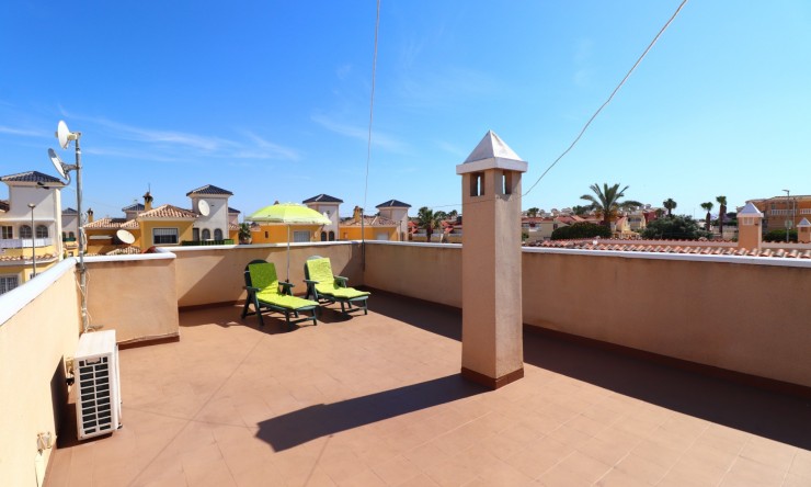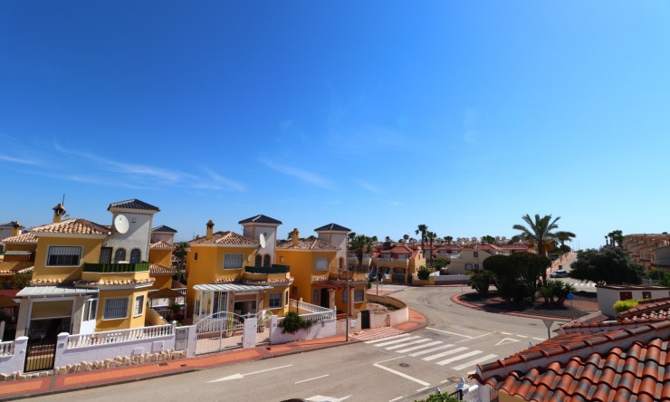 Deze fantastische vrijstaande gelijkvloerse villa met drie slaapkamers in Lo Crispin, Algorfa, is gelegen in een populaire en gevestigde urbanisatie aan de Costa Blanca Zuid, op slechts 5 minuten lopen van een lokale supermarkt en diverse bars en restaurants in de urbanisatie. Supermarkten van bekende merken zijn te vinden op minder dan 5 minuten rijden en de prachtige stranden met blauwe vlag van Guardamar del Segura liggen op slechts 12 minuten rijden. Het bruisende stadje Ciudad Quesada ligt ook op slechts een paar minuten rijden. Deze prachtig gepresenteerde villa beschikt over drie slaapkamers, een moderne en recent gerenoveerde inloopdouche, een lichte en comfortabele woon-/eetkamer met een gashaard en een volledig ingerichte open keuken. De woning is voorzien van airconditioning, inbouwkasten in alle slaapkamers en veiligheidshekken voor een gerust gevoel. Buiten is er een ruime, privé en onderhoudsarme betegelde tuin met een zonnig gedeelte op het zuiden aan de achterzijde, omgeven door aantrekkelijke beplanting en volgroeide beplanting. Een ruim, overdekt terras aan de voorzijde, grenzend aan de woonkamer, biedt een ideale ruimte om buiten te eten. Een buitentrap leidt naar een groot, zonovergoten privé dakterras met prachtig uitzicht over de omgeving, plus een handige berging onder de trap. Gelegen om de hoek van het mooie gemeenschappelijke zwembad, is deze woning ideaal als vakantiehuis, permanente bewoning of verhuurinvestering aan de zonnige Costa Blanca Zuid.