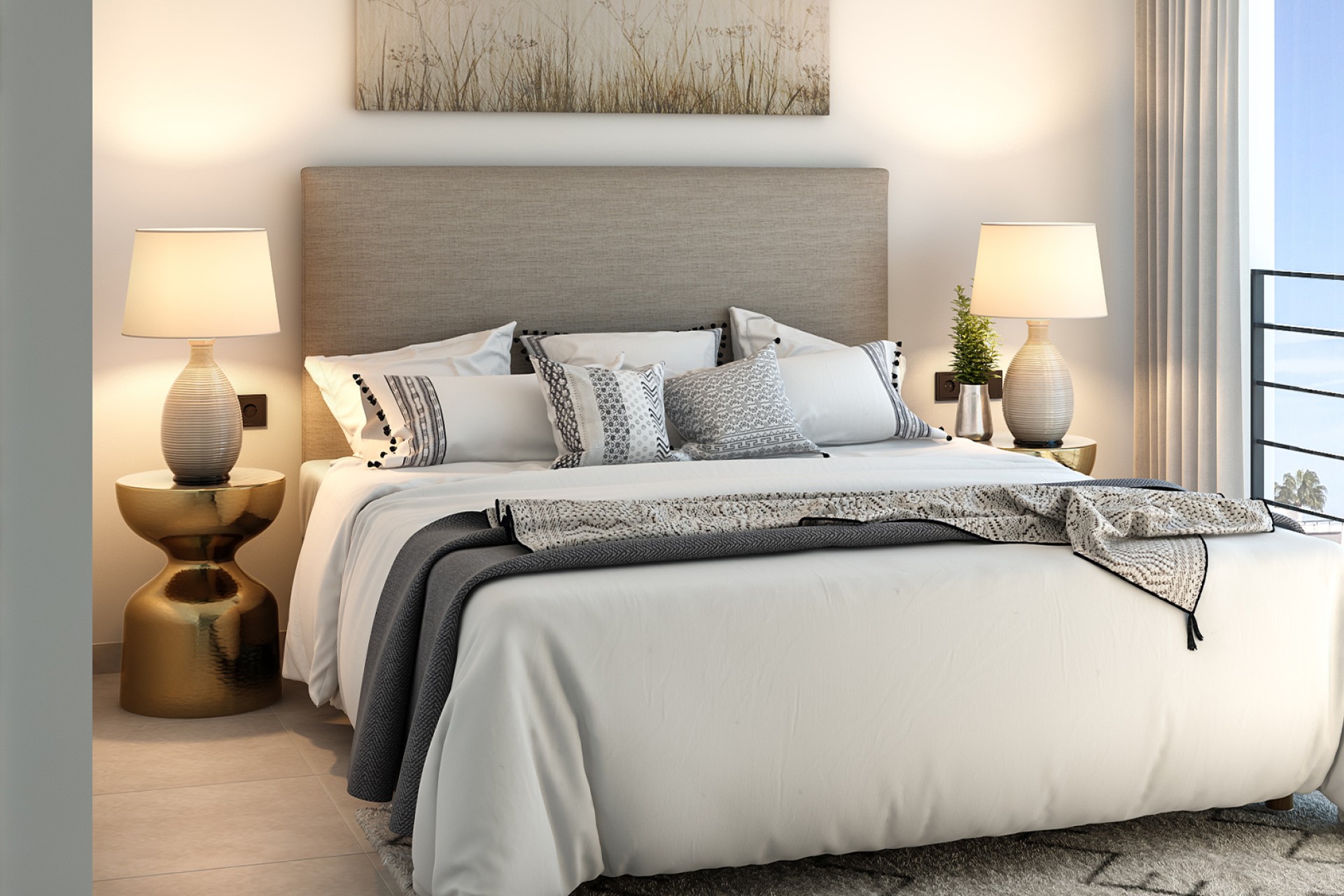 Elke woning beschikt over een ruime indeling met 3 slaapkamers en de keuze uit 2 of 3 badkamers, wat zorgt voor voldoende ruimte voor gezinnen en gasten. De interieurs zijn vervaardigd met hoogwaardige afwerkingen, waaronder keramische en porseleinen tegels, die een vleugje elegantie aan uw huis toevoegen. De inbouwkasten bieden handige opbergoplossingen, terwijl de airconditioning het hele jaar door voor comfort zorgt.