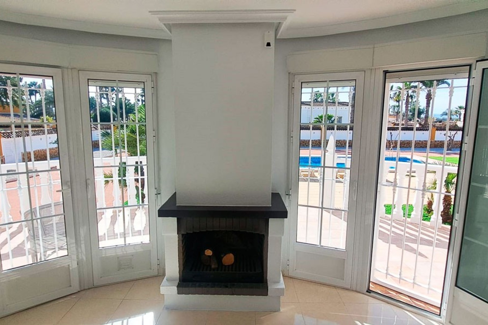 Deze fantastische, vrijstaande villa met drie slaapkamers in Catral ligt te midden van een prachtig, open landschap en biedt rust, privacy en een adembenemende omgeving, terwijl alle voorzieningen op slechts 5 minuten rijden van het stadje liggen. De woning profiteert van een uitstekend wegennet langs de kust, waardoor de stranden en de golfbaan La Finca binnen circa 20 minuten te bereiken zijn. Dit maakt het een ideale locatie aan de Costa Blanca Zuid. Deze indrukwekkende villa van 163 m² is gelijkvloers en staat op een prachtig aangelegd en volledig ommuurd perceel van 2.329 m². Het interieur beschikt over een unieke, gebogen woonkamer met airconditioning en een sfeervolle open haard, evenals twee sets openslaande glazen deuren naar een overdekt terras – perfect voor binnen-buitenleven. De open keuken is voorzien van een ontbijtbar en een deur naar buiten, terwijl een brede boog toegang geeft tot een veelzijdige ruimte die kan worden gebruikt als eetkamer of extra zitruimte. Er zijn drie tweepersoonsslaapkamers, allemaal met inbouwkasten, een gezinsbadkamer en twee doucheruimtes, waarvan één en suite. Aan de buitenkant biedt de woning toegang tot een privésolarium waar u kunt genieten van een panoramisch uitzicht over het landschap, met bovendien de voordelen van zonnepanelen. Het ruime perceel is ontworpen met het oog op onderhoud, met bestrating, kunstgras en volwassen palmbomen. Een groot privézwembad van 10 x 5 meter biedt de perfecte plek om te ontspannen en te entertainen, terwijl er voldoende parkeergelegenheid op eigen terrein is en een garage voor twee auto's met extra opbergruimte. De villa beschikt over water- en elektriciteitsnet, een waterbuffersysteem en vier zonnepanelen, wat de efficiëntie en duurzaamheid verhoogt. Deze uitzonderlijke landelijke woning combineert ruimte, comfort en rust, waardoor het een perfecte permanente residentie of luxe toevluchtsoord is in het hart van de Costa Blanca Zuid.