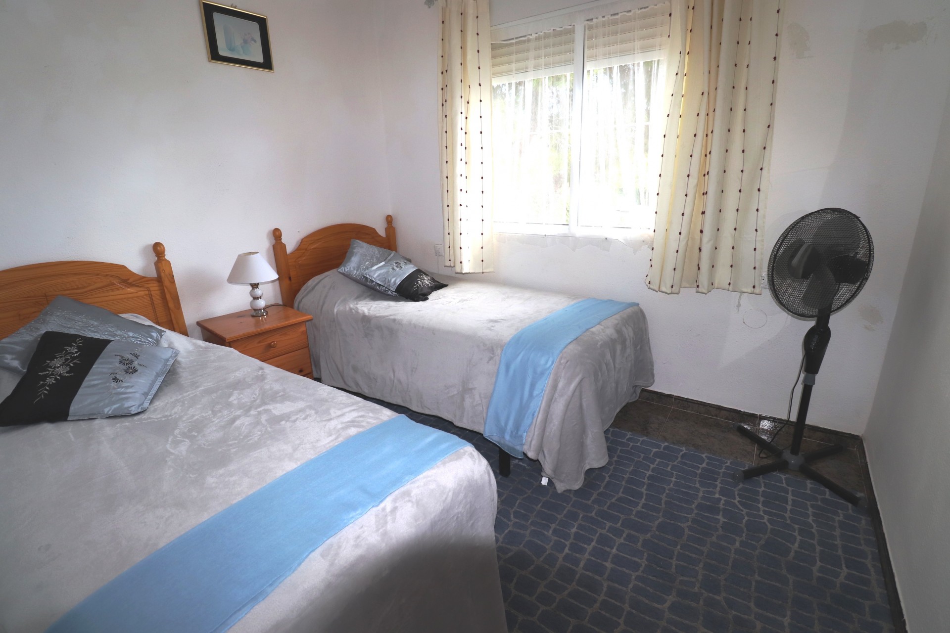 Dette hjørnet, sørvendt, villa med tre soverom i Montemar ligger i et boligområde, like utenfor den spanske landsbyen Algorfa, og nær 5 * La Finca Golf, Hotel & Spa Resort. Ligger innen 10 minutters gange fra de nærmeste fasilitetene på La Finca, med de viktigste supermarkedene bare 5 minutters kjøretur unna. Strendene kan også bli funnet på bare 15 minutter! Denne fantastiske eiendommen består i første etasje i et separat fullt utstyrt kjøkken, med en dør til hagene; romslig stue / spisestue med en loggbrenner og doble dører ut til den overbygde verandaen, en stor plass for utendørs servering og avslappende utsikt over det private svømmebassenget; to doble soverom, master med eget bad, også med direkte tilgang til utsiden; og en familie dusjrom. Første etasje består deretter av en egen leilighet, eksternt tilrettelagt, bestående av en åpen kjøkkenkrok, stue, soverom, dusjrom og et god størrelse solarium, ideelt for soling med utsikt over området! Utenfor er en modnet anlagt hage med et bredt utvalg av trær og planter, hovedsakelig grusete med flislagte områder rundt svømmebassenget, bilportparkering og rikelig med sitteplasser under det permanente lysthuset, perfekt for underholdende og grillens ... Ekstra medfølger med Denne eiendommen er, bod, trehus, garderober, air condition og takvifter!