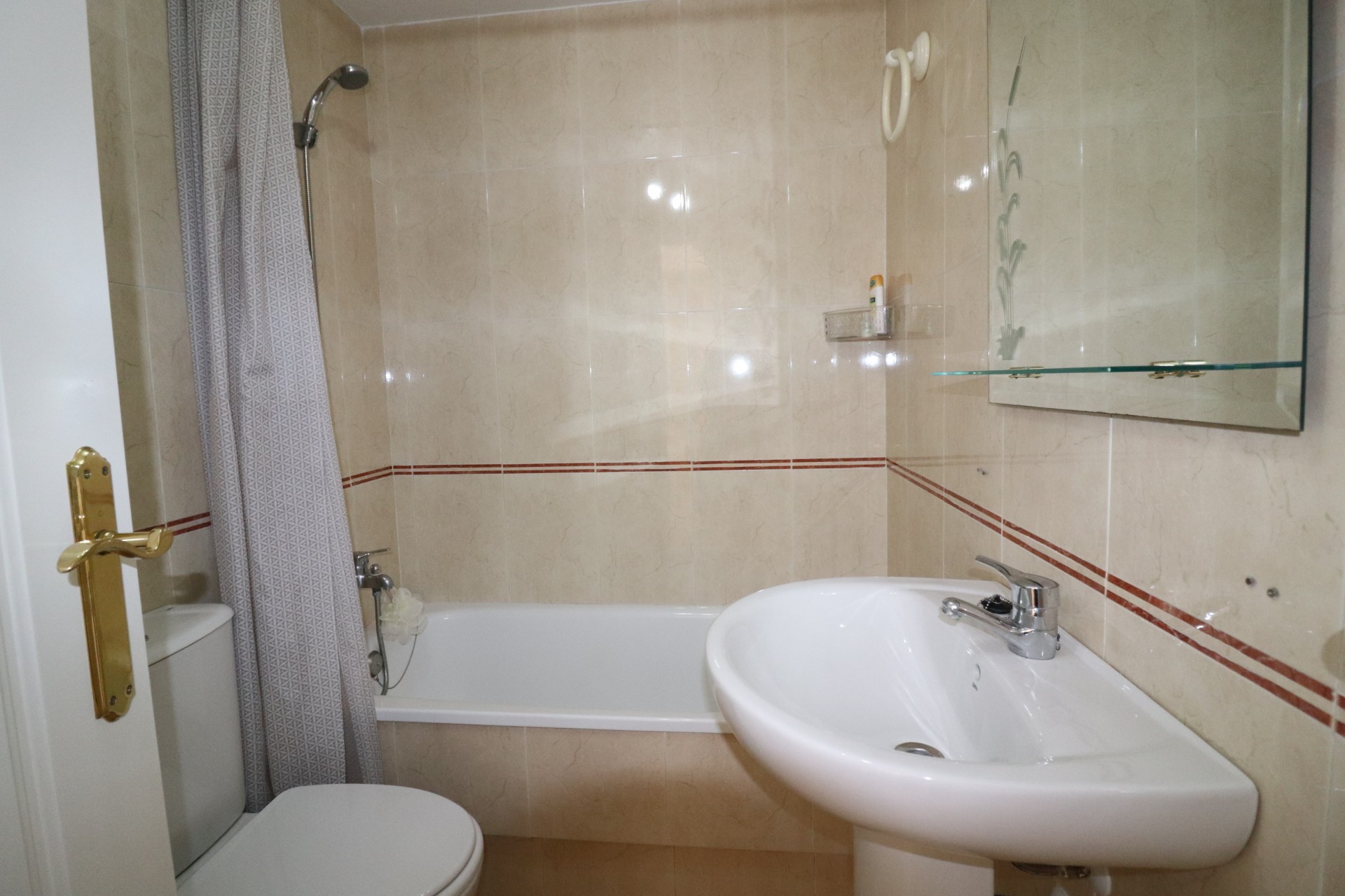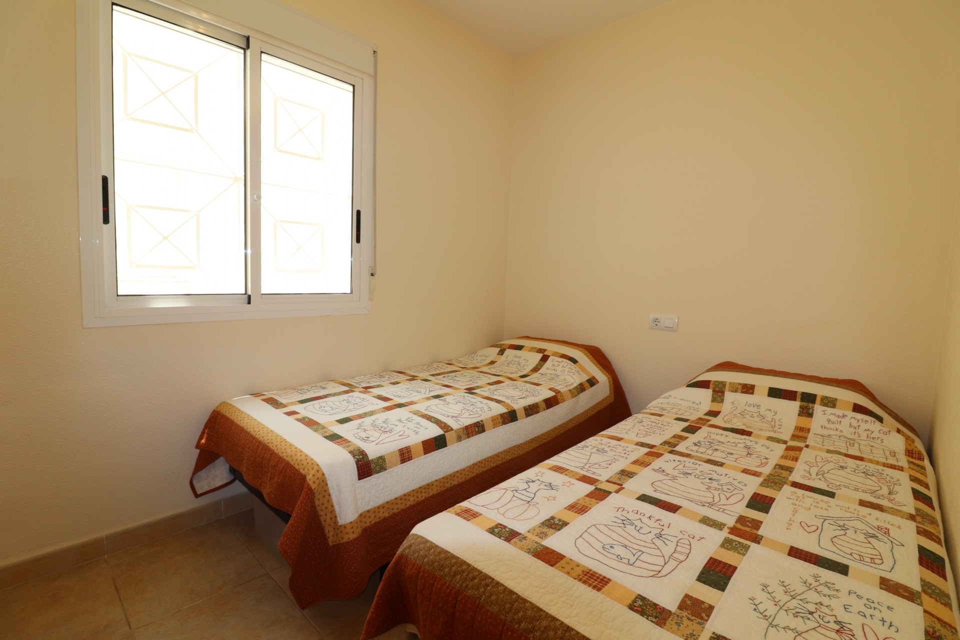Denne to soverommet, toppetasjes leilighet i Aguas Nuevas ligger i en populær del av Torrevieja. Ligger kun en 2-minutters kjøretur til sentrum, kun 5 minutters gange til nærmeste fasiliteter, fasiliteter og butikker, og kun kort avstand fra et bredt utvalg av strender innenfor dette området! Denne eiendommen består av en åpen plan fullt utstyrt kjøkken; stue / spisestue med åpen åpen terrasse utenfor; to doble soverom; og en familie bad. Trapper fører deretter til det private taket solarium av en flott størrelse, veldig romslig og dekket av sol, flott for BBQ og underholdende ... Ekstra inkludert med denne sikre inngjerdet eiendom er privat parkering, felles svømmebasseng, garderober, air condition i stuen og hovedsoverommet og et oppbevaringsrom på solariumet!