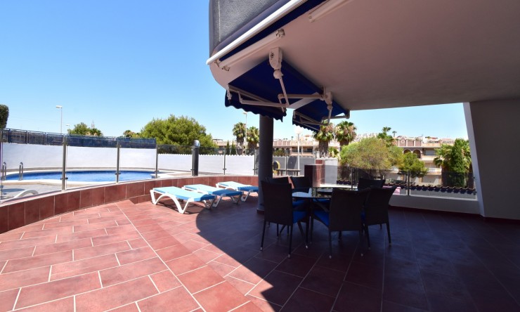 Denne vestvendte leiligheten med tre soverom i første etasje i Las Filipinas ligger i det populære området Villamartin, bare noen få minutters gange fra et par populære restauranter og barer, med en hovedkjede-supermarked bare 10 minutter unna. Flere golfbaner av topp kvalitet kan nås på bare 5 minutters kjøretur, mens de vakre strendene på Orihuela Costa og det berømte kjøpesenteret La Zenia Boulevard ligger bare 10 minutter unna med bil. Med en generøs byggestørrelse på 99 m² har denne moderne leiligheten en stilig og moderne følelse overalt. Den romslige åpne stuen har dører som fører ut til en utrolig romslig buet, delvis overbygd terrasse med utsikt over det attraktive fellesbassenget. Det elegante, moderne kjøkkenet inkluderer en frokostbar og kompletteres av et separat vaskerom. Alle tre soverommene er dobbeltrom med innebygde garderober, og hovedsoverommet har direkte tilgang til terrassen. Det er også to moderne dusjrom og klimaanlegg overalt. Utenfor kan leiligheten skryte av et 119 m² lite vedlikeholdskrevende hageområde anlagt med kunstgress – sammen med terrasseområdet, ideelle soner for utendørsliv og underholdning. En ekstra funksjon inkluderer en underjordisk parkeringsplass med privat bod. En utmerket mulighet i ettertraktede Costa Blanca Sør.