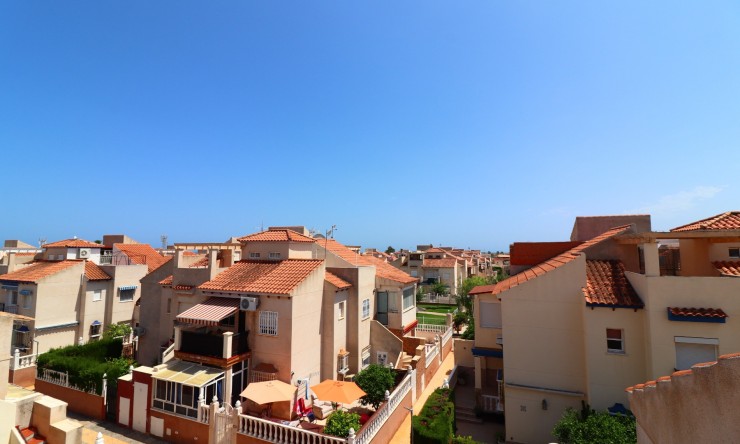 Denne sørvendte leiligheten med to soverom i toppetasjen i Playa Flamenca ligger i hjertet av den alltid populære Orihuela Costa, bare en kort spasertur fra den kommunale idrettsplassen og bare 10 minutters gange til et utvalg av restauranter og kafébarer. Kjøpesenteret La Zenia Boulevard, vakre sandstrender og Villamartin golfbane kan alle nås innen 5 minutters kjøretur, og tilbyr den perfekte blandingen av bekvemmelighet og kystlivsstil på Costa Blanca Sør. Eiendommen nås via en delvis overbygd inngangsterrasse som også kan skryte av solskjerming, et herlig sted å slappe av og nyte solskinnet. Innvendig fører den lyse stuen/spisestuen til et separat buet kjøkken, to doble soverom, inkludert et hovedsoverom med innebygde garderober, og et familiebad. Innvendig trapp fra stuen fører til et rom i første etasje, ideelt som kontor/sittegruppe, som åpner ut mot en privat takterrasse – perfekt for soling eller utendørs servering, og som også har et praktisk bod. Beboerne har tilgang til et pent vedlikeholdt felles bassengområde med gressplen og fordelen av parkering utenfor veien. En fantastisk mulighet for ferier, utleieinvestering eller helårsbolig på et ettertraktet sted på Costa Blanca Sør.