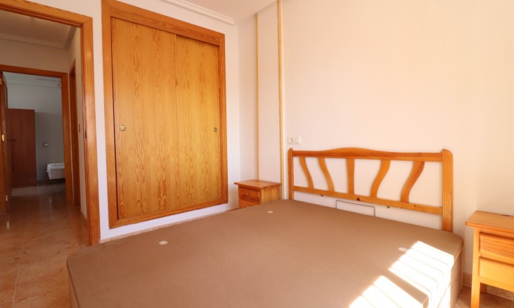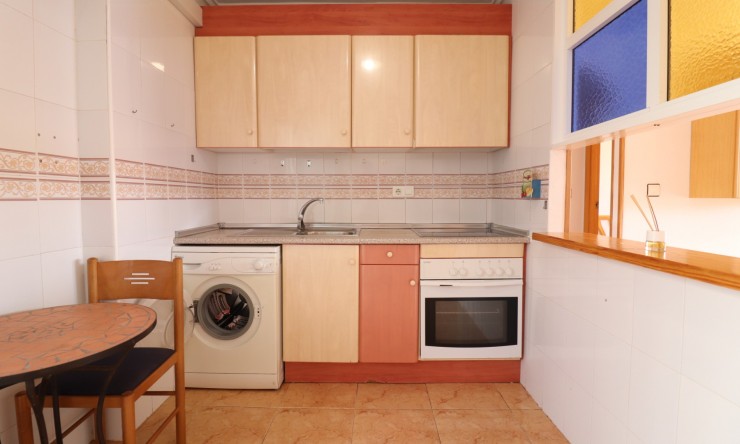 Denne østvendte leiligheten med to soverom i toppetasjen i Altos del Limonar ligger i et populært boligområde omgitt av den vakre naturlige saltsjøen, bare et par minutters gange fra en rekke spisesteder og kafébarer. Carrefour-supermarkedet, Habaneras kjøpesenter, kino og andre fasiliteter ligger bare en 5-minutters kjøretur unna, mens strendene i Torrevieja og den internasjonale marinaen kan nås på bare 10 minutter. Flere toppgolfbaner ligger også innen 20 minutters kjøretur. Leiligheten har en overbygd inngangsterrasse som fører inn til en lys stue/spisestue, sammen med et kjøkken i amerikansk stil. Det er to doble soverom, hvor hovedsoverommet har innebygde garderober og takvifte, pluss et familiebad. Fra inngangsterrassen fører trapper opp til et privat solarium – ideelt for avslapning eller underholdning i solen. Eiendommen har også tilgang til et herlig felles svømmebasseng, noe som gjør det til et fantastisk alternativ for ferier, utleieinvestering eller heltidsbolig på Costa Blanca Sør.