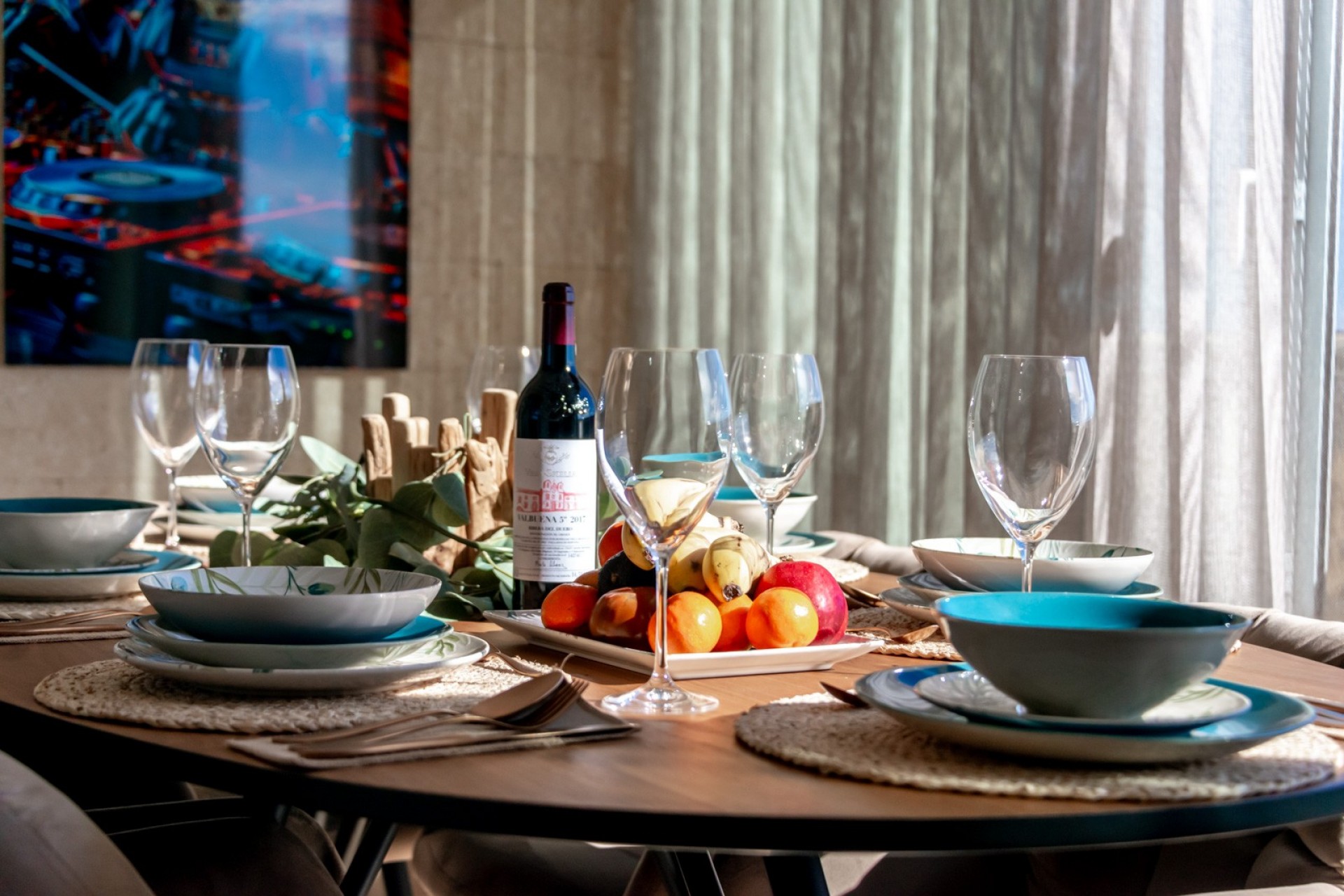 Boligen er fordelt over to plan.I hovedetasjen finner vi en romslig og lys stue- og spisestue med store panoramavinduer som gir sjøutsikt fra nesten alle vinkler. Det fullt utstyrte designkjøkkenet er sømløst integrert i oppholdsrommet. Etasjen har også tre soverom og to bad, hvorav ett en suite.