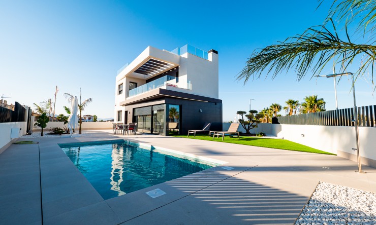 This Stunning, South-East Facing, Three Bedroom, Link-Detached Villa in La Finca Golf Resort is located on a Prestigious 5* Hotel, Spa & Golf Complex, just outside the village of Algorfa, and within a couple of minutes drive to the many amenities and facilities this resort has to offer! The nearest beaches are situated in Guardamar in a 15 minute drive... This immaculate property, ready to move in to, comprises of a separate fully fitted kitchen, with utility space and breakfast hatch; spacious living room with feature vaulted ceiling and access out to the terrace, ideal for eating outdoors, overlooking the beautiful private gardens, swimming pool and golf course; separate dining room and entrance room, again with vaulted ceiling, with access out to either the front garden or the back garden with pool; three double bedrooms, two of which are on the ground floor, whilst the master is on the first floor, of a great size; a downstairs bathroom; a first floor shower room; hallway with view over the living room; dressing room; and access out to the solarium, which is where you can truly appreciate the views on offer, panoramic golf course, simply amazing! Outside is a lovely garden, well landscaped with graveled areas, however mainly tiled, plus artificial grass, desirable plants, trees and shrubs, a private swimming pool with seating, storeroom, ample outdoor dining and entertaining space!!! Extras are to include fitted wardrobes, air conditioning throughout, grills, gas fireplace, panel heaters, off road parking, gated community parking, 3 x sun awnings, and utility space! Simply amazing!