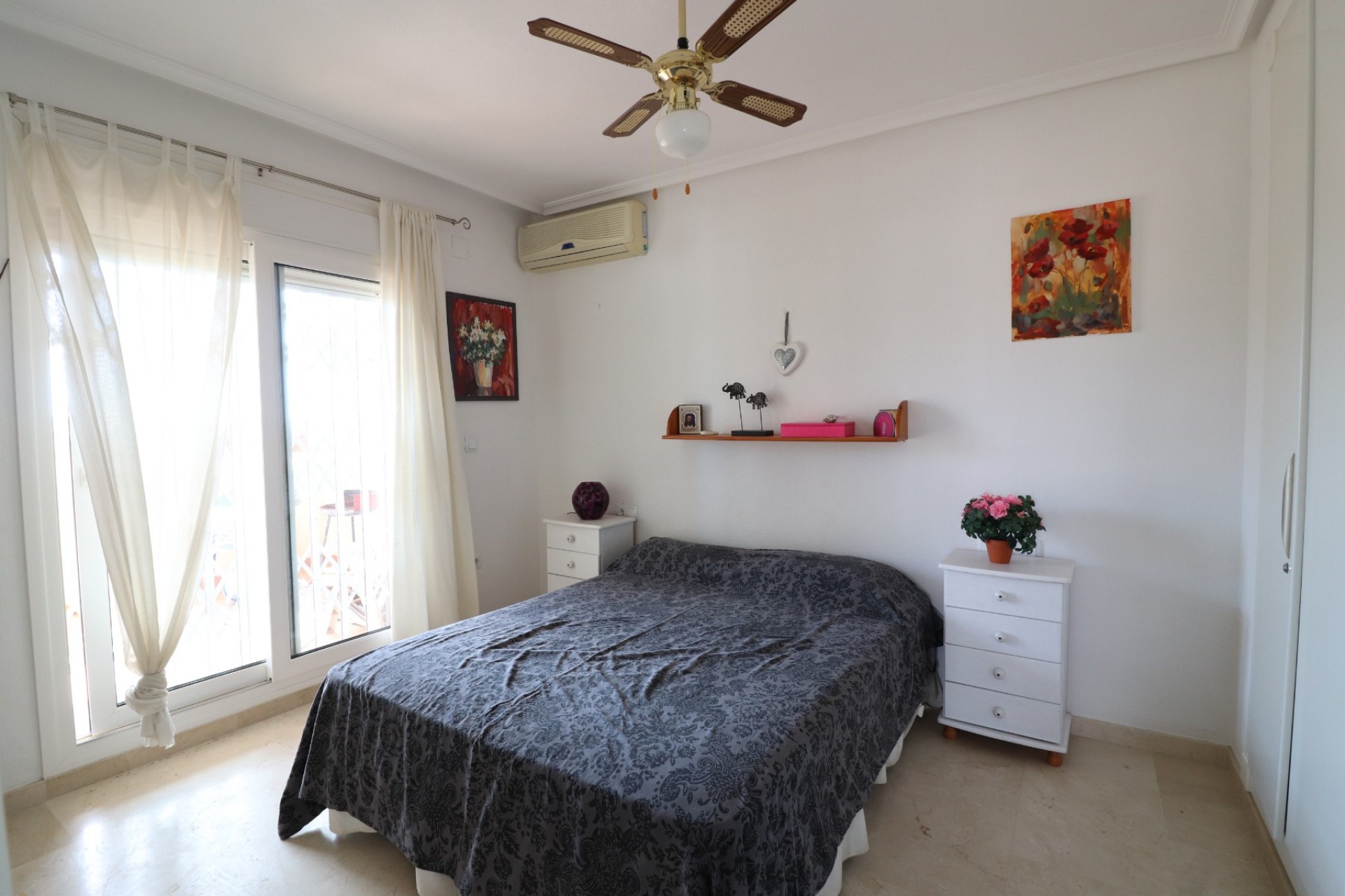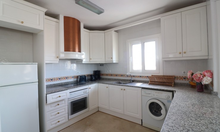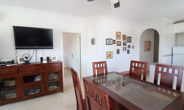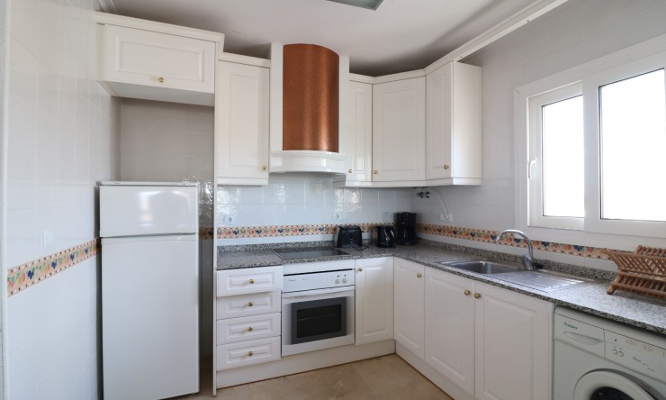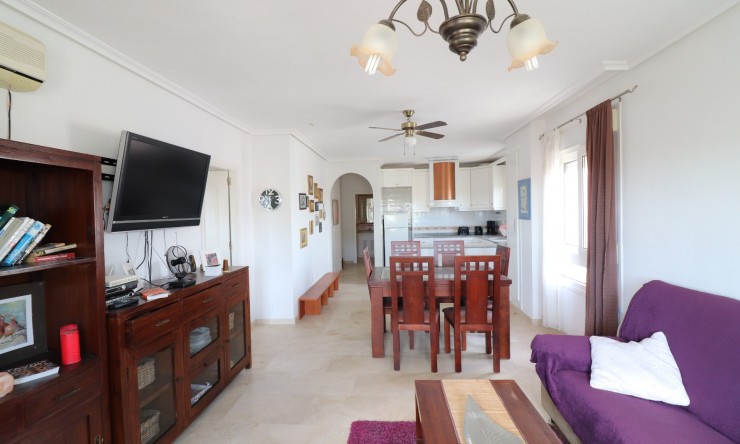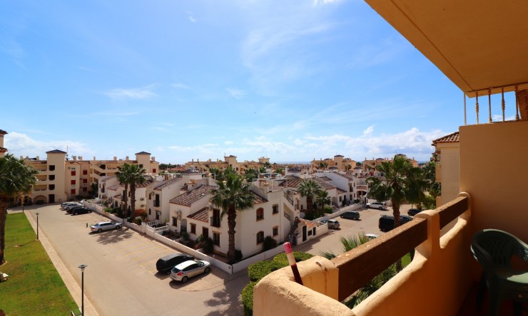This East Facing, Two Bedroom, Top Floor Apartment in Playa Flamenca, is located in the heart of the Orihuela Costa, just a 5 minute walk to an array of cafe bars and restaurants. The renowned La Zenia Boulevard shopping centre and beautiful sandy beaches are just a 5 minute drive away, with a choice of golf courses within a 10 minute drive radius. This well-presented 83m2 apartment features a covered entrance terrace leading into a spacious lounge/dining room with air conditioning, an open plan fitted kitchen, two double bedrooms with built-in wardrobes – the master benefiting from air conditioning and its own terrace, there is also a family bathroom, and an en suite shower room. The block benefits from a lift, access to a communal solarium via external stairs, a well-maintained communal pool, and off road parking. Situated in a highly sought-after area of the Costa Blanca South, this property offers comfortable living for holidays, rental or permanent residence.
