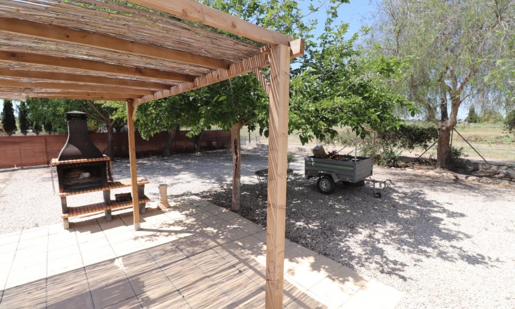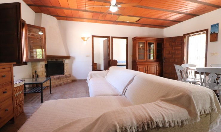 This South Facing, Two Bedroom, Detached Country Villa in Dolores, is located in a peaceful countryside setting, surrounded by citrus groves and nature, yet just a 15 minute walk from the charming town of Dolores, where you’ll find a range of amenities and services. The beautiful beaches of the Costa Blanca South are only a 20 minute drive away, offering the perfect blend of rural tranquility and coastal convenience. All on one level, this Spanish home comprises of a lounge/dining room with a corner feature fireplace and ceiling fan, an American-style fitted kitchen, two double bedrooms with free-standing wardrobes, and a family shower room with a walk-in shower. A covered entrance terrace provides a lovely shaded spot to relax and enjoy the views across the spacious 910m2 gravelled plot, which boasts ample off-road parking, a built-in BBQ area, mature trees, and palm trees, ideal for those who appreciate outdoor living and privacy. This charming country property is a fantastic opportunity for those seeking peace and space, while still being close to local amenities and just a short drive from the coast.