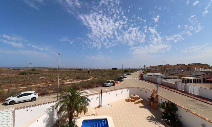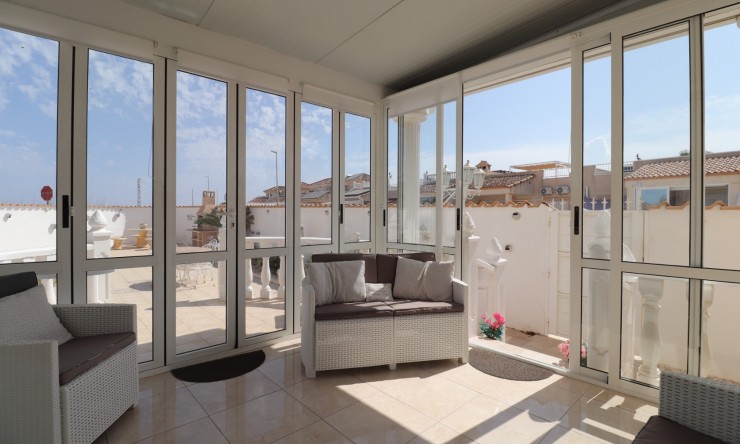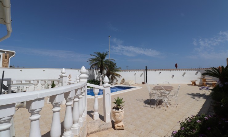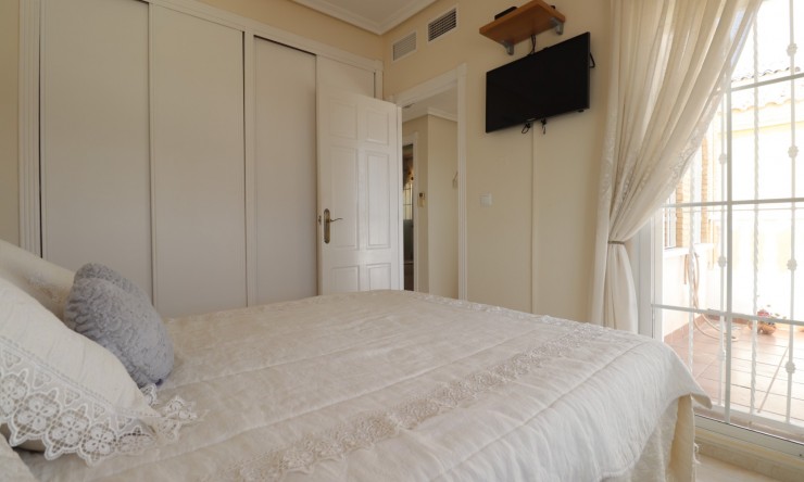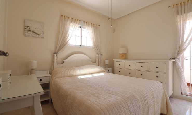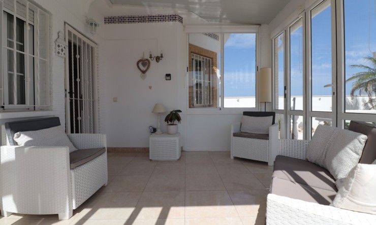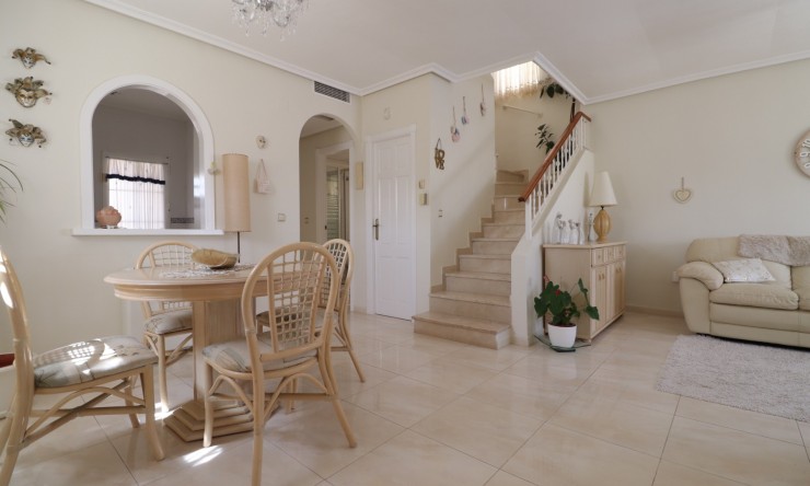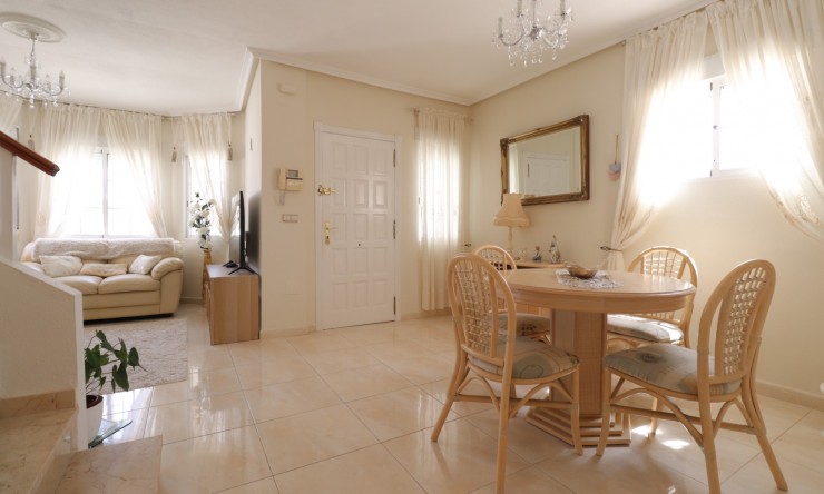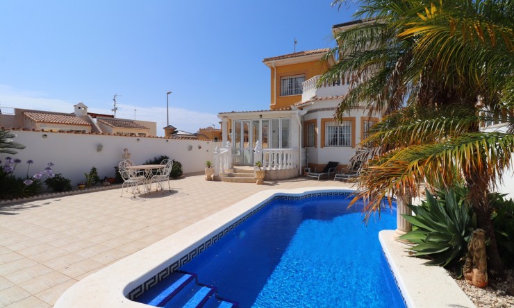 This South Facing, Three Bedroom, Detached Villa in Lo Crispin is located within a five minute walk of a variety of café bars and restaurants, while the popular towns of Quesada and Benijófar are just a five minute drive away. The prestigious 5* La Finca Golf Resort can be reached in ten minutes, with the stunning beaches of the Costa Blanca South only 20 minutes by car. Beautifully presented and exceptionally well maintained, this spacious villa sits on a 325m² fully tiled and walled plot. The standout feature is the large, attractive glazed-in terrace, ideal for year-round use and overlooking the private pool. Inside, the lounge/dining room features stairs leading to the first floor, with a separate fully fitted kitchen that has direct access to the outside and a handy utility area. Also on the ground floor is a double bedroom and a modern shower room. Upstairs, there are two further double bedrooms, both with access to private terraces. The master bedroom enjoys a charming curved terrace with pleasant open views. There is also a second shower room on this level. All bedrooms include built-in wardrobes, and the property benefits from air conditioning throughout. Outside, the villa offers off-road parking, a lovely BBQ area, and plenty of space for outdoor dining and relaxation beside the private pool. A superb home in the heart of Costa Blanca South, perfect for holidays or permanent living.