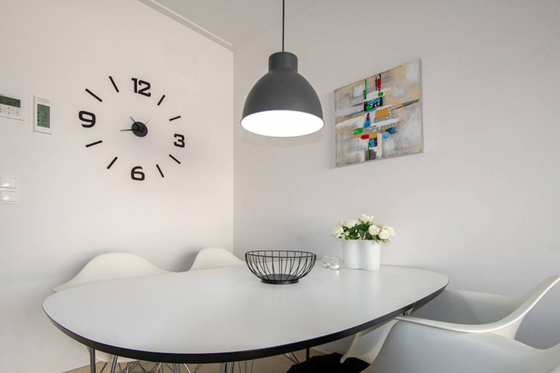 Ready-to-move-in terraced villa in the popular residential area of Ciudad Quesada in Rojales. Only 10 minutes’ drive from the spectacular beaches of Guardamar and Torrevieja, and close to the beautiful Natural Park of the Lagoons of La Mata. All the daily necessities are a short drive from the home, like supermarkets, banks, pharmacies, bars, and restaurants. The Alicante airport is only 45 minutes away by car. Beautifully presented home distributed on two floors plus solarium, with 3 bedrooms, 2 bathrooms (one en-suite), and a guest toilet. The spacious and bright living area combines the kitchen, dining area and lounge in a single space, that opens onto a Southwest facing terrace with a private pool, and an outdoor dining area. The master en-suite bedroom is on the ground floor, with the remaining 2 bedrooms and shared bathroom are on the first floor. The spacious terrace on the first floor leads to the solarium, which is the perfect place to enjoy the Costa Blanca climate, with a pergola covered lounge area with artificial grass, and a summer kitchen. The home includes fully installed ducted air conditioning (hot/cold), white goods, private pool, and parking on the premises. CHARACTERISTICS private poolterraceprivate gardenuncovered parkingsolarium