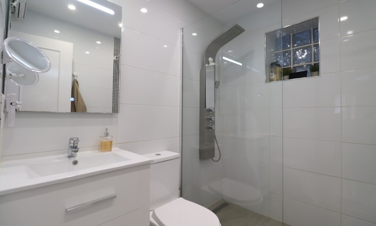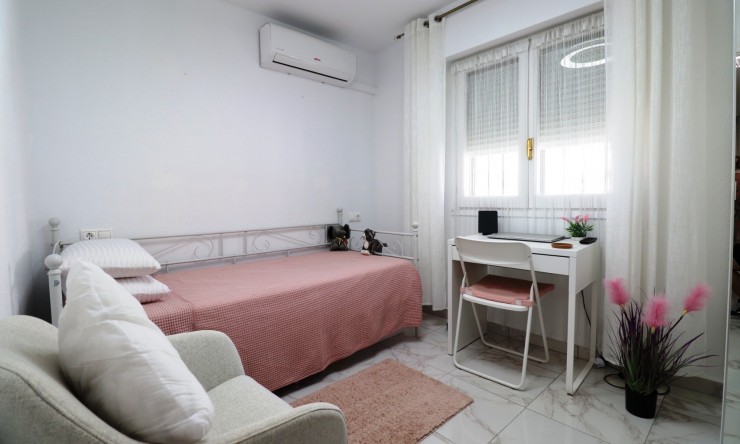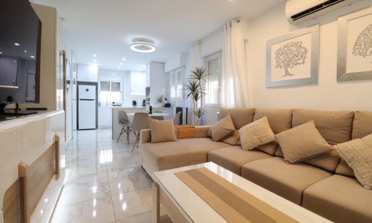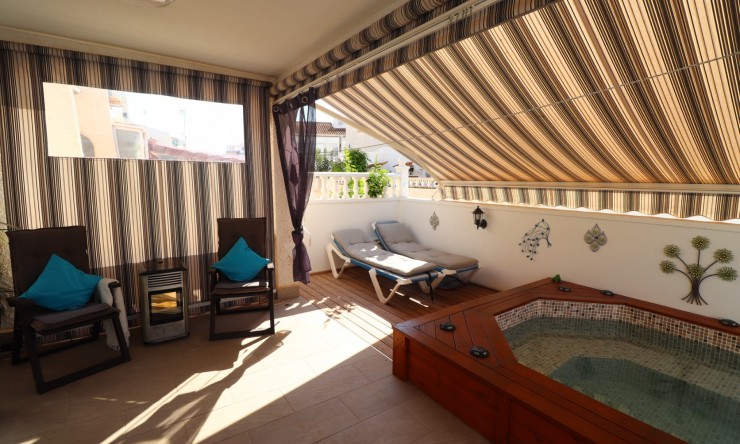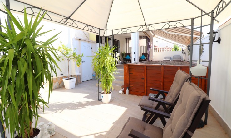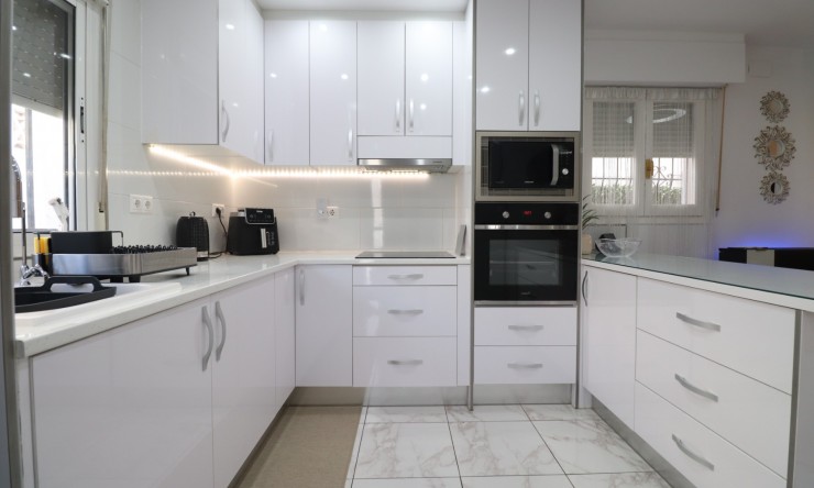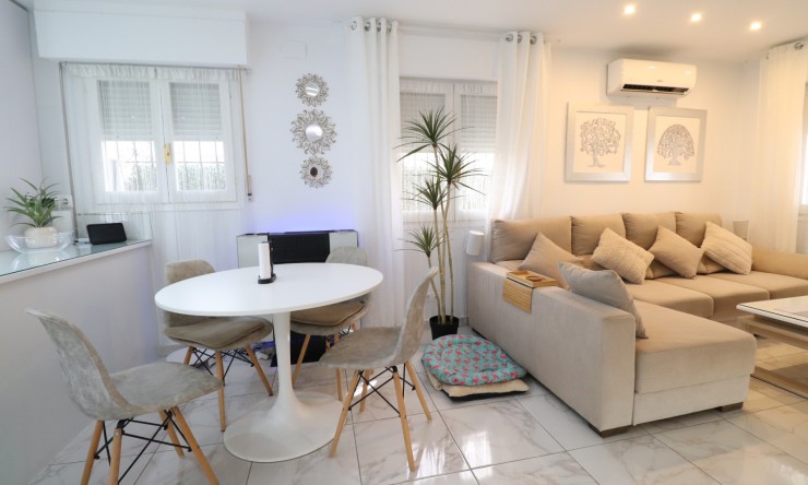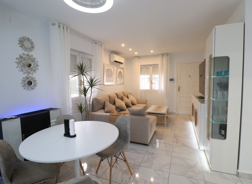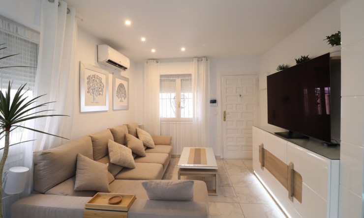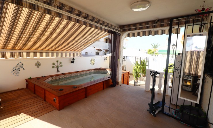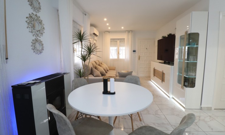 This South West Facing, Three Bedroom, Detached Villa in La Florida is located within a popular residential area, just a 2 minute walk to the nearby commercial centre with a variety of amenities. The well-known Emerald Isle entertainment venue—with bowls club, restaurant, and pool—is just a couple of minutes away, while La Zenia Boulevard, stunning beaches, and several golf courses can be reached within a 10 minute drive. Beautifully presented throughout, this single-level villa offers a 90m² build on a 210m² low-maintenance tiled plot. A covered entrance terrace leads into a bright lounge/dining room featuring a cosy pellet burner, and an open-plan fitted kitchen with breakfast bar and adjoining utility room with direct outside access. There are three double bedrooms, the master with fitted wardrobes, and two sleek modern shower rooms, one of which is en suite. The exterior space includes a private splash pool, perfect for cooling off, while residents also have access to two well-maintained communal pools. Additional features include air conditioning, making this a comfortable home year-round. An ideal full-time residence, holiday home, or rental investment opportunity on the sought-after Costa Blanca South.