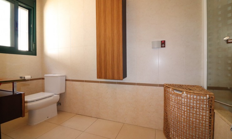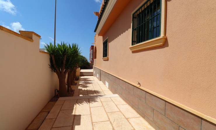 This South Facing, Four Bedroom, Detached Villa in Ciudad Quesada is located in a prestigious area, surrounded by exclusive properties in the highly desirable La Fiesta neighbourhood of the Costa Blanca South. Conveniently situated just a 10 minute walk from a variety of bars, restaurants, and a supermarket, this villa is also only a 5 minute drive to the La Marquesa Golf Course and just 10 minutes from the beautiful beaches of Guardamar. This imposing 175m2 build is set on a generous 500m2 tiled plot and offers spacious, comfortable living across two levels. The ground floor features an impressive ‘L’-shaped lounge/dining room with stairs leading to the first floor, a separate fully fitted kitchen with access to a utility area, three double bedrooms with built-in wardrobes – including a master with en-suite bathroom – and a family shower room. Upstairs, the first floor boasts an open plan area as fourth bedroom/office and access to a large, ‘L’-shaped terrace with stunning views over the salt lakes and out towards the sea – the perfect place to relax and enjoy the Mediterranean surroundings. Outside, the property offers a private 8 x 5 swimming pool, off-road parking, a covered terrace for outdoor dining, some planted trees, and a storeroom. Comfort is guaranteed year-round with ducted air conditioning, underfloor heating, and wall heaters in the living area and master bedroom. This well-appointed villa offers a perfect blend of luxury, location, and lifestyle — ideal for permanent living or as a high-quality holiday home in one of Ciudad Quesada’s most sought-after areas.