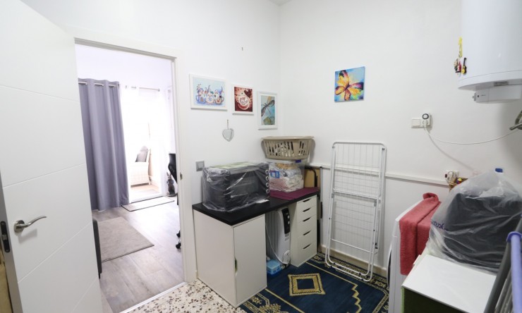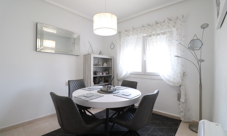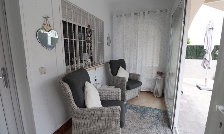This East Facing, Three Bedroom, Townhouse in Monte Azul is located on a well-established urbanisation, which benefits from its own bar and restaurant. Ideally positioned, it's only a 5-minute drive to the popular towns of Quesada and Benijofar, with both La Finca and La Marquesa golf courses reachable in just 10 minutes drive. The stunning beaches of the Costa Blanca South are approximately 15 minutes away by car, making this a fantastic location for both permanent living and holidays. This immaculate and spacious property boasts a generous build size of 136m2 and offers both front and rear access. Upon entering, you are welcomed by a glazed-in terrace with an added bonus of an electric sun blind — a perfect additional sitting area. The ground floor comprises a bright lounge with air conditioning and a wall-mounted heaters, a modern separate fitted kitchen with a door leading out to the rear patio, plus there is a utility room, a stylish shower room, and a double bedroom (currently used as a dining room). Upstairs features two further double bedrooms, including a master with air conditioning and a private terrace benefitting from a sun blind. There is also a spacious family bathroom with both a corner bath and a separate shower cubicle. The garage has been thoughtfully converted to provide a comfortable covered seating area and two additional rooms, one currently being used as an office — offering great versatility. Outside, the front tiled garden includes off-road parking, and residents have access to a lovely communal pool. This beautifully presented townhouse offers excellent space, comfort, and convenience, in a peaceful yet well-connected area of the Costa Blanca South.