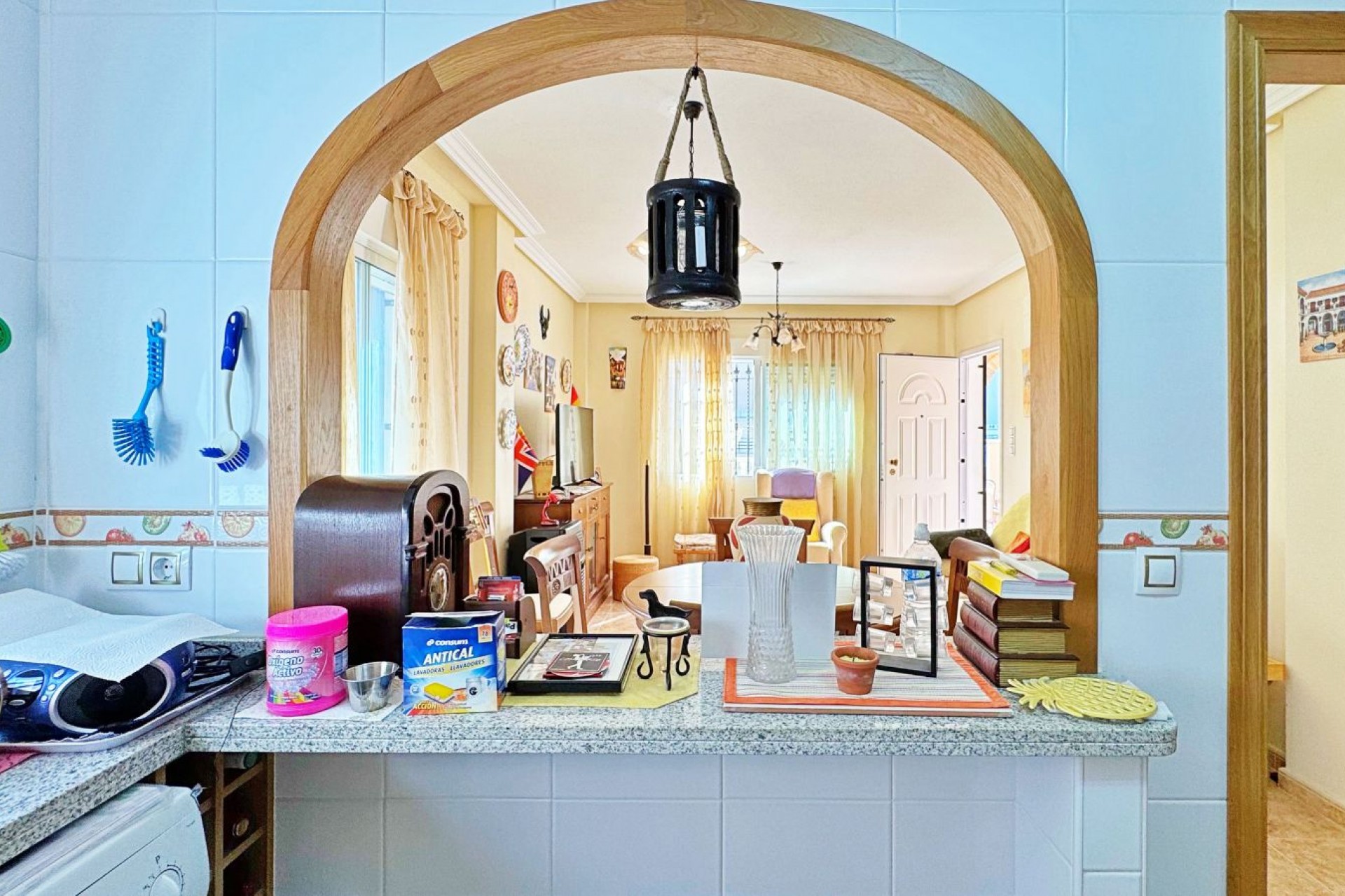 Beautiful corner quad-style duplex located in the exclusive Vista Azul Residential, one of the most desirable developments in Villamartin, Orihuela Costa. This home perfectly combines Mediterranean style, comfort and an excellent location within a quiet, family-friendly environment close to all essential amenities. With 90 m² of built area on a 120 m² plot, the property enjoys a southwest orientation, providing plenty of natural light all day long. The ground floor offers a bright living-dining room with direct access to the terrace, a fully equipped independent kitchen, one bedroom ideal for guests or a home office, and a complete bathroom. The upper floor features two bedrooms with fitted wardrobes, a second bathroom, and access to a 20 m² private solarium, perfect for sunbathing, relaxing or enjoying open views. The property is in excellent condition and equipped with air conditioning, awnings, security door and private parking inside the plot. The spacious terrace surrounding the house provides several outdoor dining and chill-out areas, ideal to enjoy the Mediterranean climate all year round. The Vista Azul complex offers exceptional communal facilities including two swimming pools (one covered), jacuzzi, sauna and gym, making it one of the most complete and sought-after communities in Villamartin. Located next to Villamartin Golf Course, close to La Zenia Boulevard and Playa Flamenca, and only 3 km from the beaches of Orihuela Costa, this home is perfect for those looking to buy a duplex in Villamartin or invest in a property for sale on the Costa Blanca. A charming property, ready to move into — ideal as a permanent home, a holiday residence or a real estate investment in Orihuela Costa.
