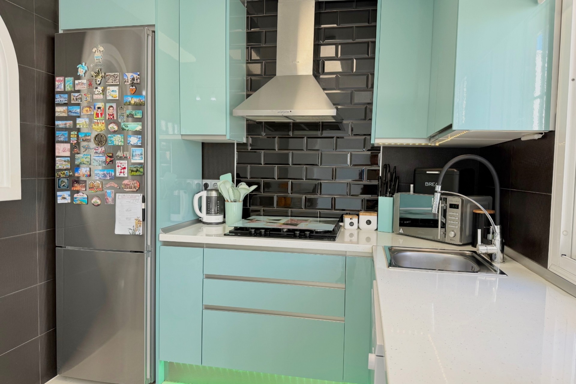 Spacious 3-bedroom, 4-bathroom corner townhouse located in the sought-after area of Doña Pepa, just minutes from the town centre. Set within a secure gated community with a communal pool, this south-west facing home enjoys sunshine throughout the day. The property is semi-detached and sits on a corner plot, offering extra privacy and space. It features two independent living areas, each with its own kitchen, making it ideal for extended family living, guests, or rental potential. The downstairs has been converted into additional living space, while the upper level is fully separate with its own kitchen. The house has been partially renovated, including a modern refurbished kitchen, renovated bathroom, and a stylish outdoor barbecue area , perfect for entertaining. Multiple balconies provide pleasant outdoor spaces, and the home benefits from private parking. Additional features include: Spacious and well-laid-out interiors house area 168 builtplot 110construction date 2004ducted air conditioning throughoutsolar panels Solar panels for energy efficiency Partially furnished Bright, airy rooms with excellent natural light A versatile and comfortable home in a prime location, close to amenities yet offering peace, privacy, and community living.