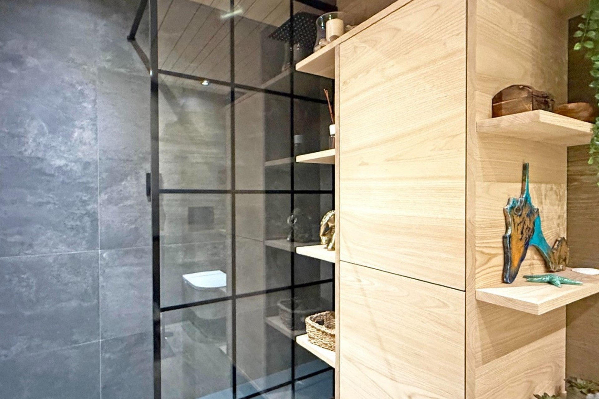Inside, the apartment stands out with exclusive chestnut wood finishes throughout, a rare touch that adds warmth and sophistication. A luxurious jacuzzi invites you to relax in style, while air conditioning ensures year-round comfort.